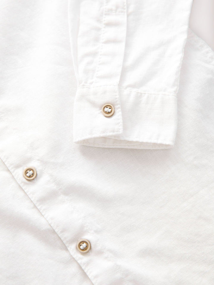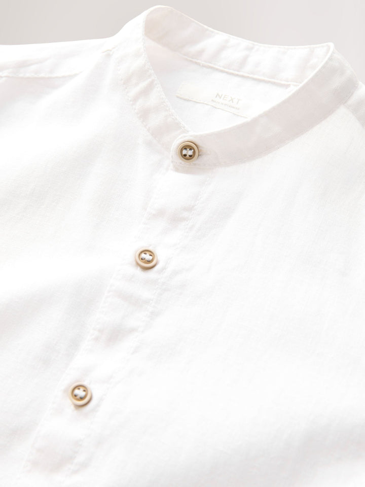Our white linen blend shirt with a grandad collar is a smart choice for your little man's summer wardrobe. Lightweight and breezy, it's ideal for warm-weather events. Designed with classic button fastenings, it pairs effortlessly with smart trousers and shoes for a polished look. Lightweight linen blend Classic grandad collar Button fastenings Machine washable. 55% Linen, 45% Cotton. Country of Origin: Myanmar