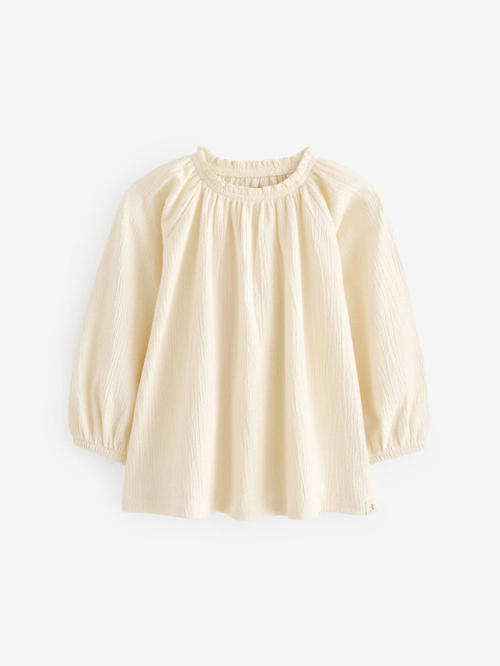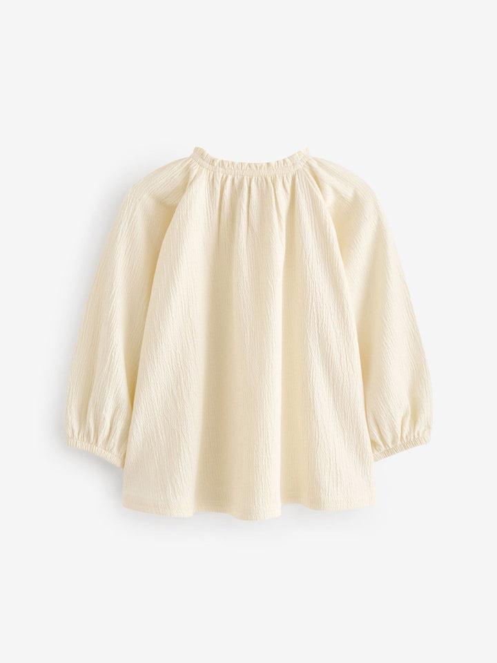 Cream Long Sleeve Gathered Neck Blouse (3mths-7yrs)