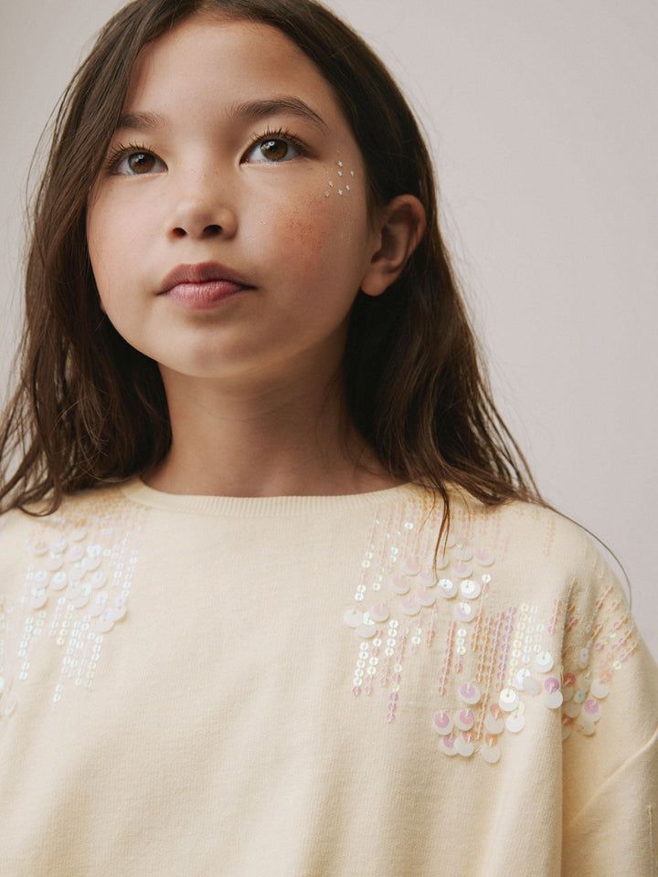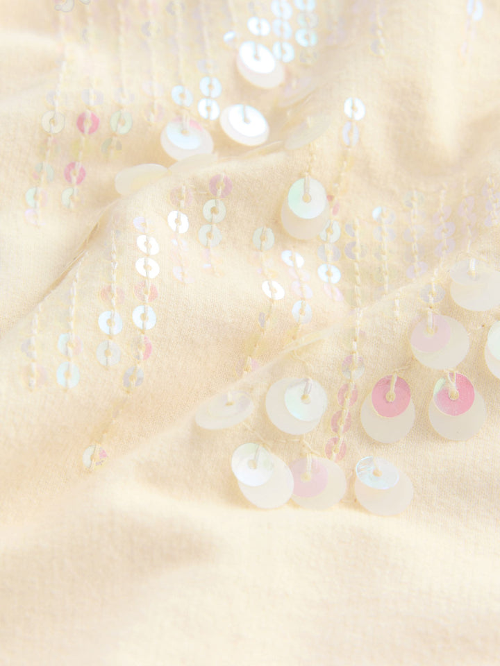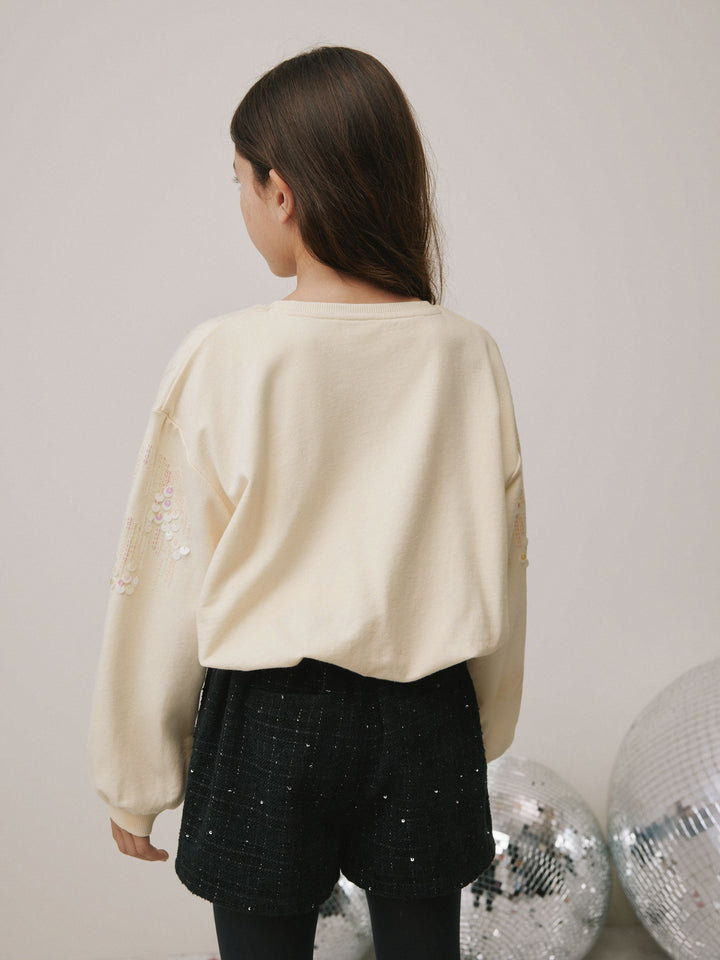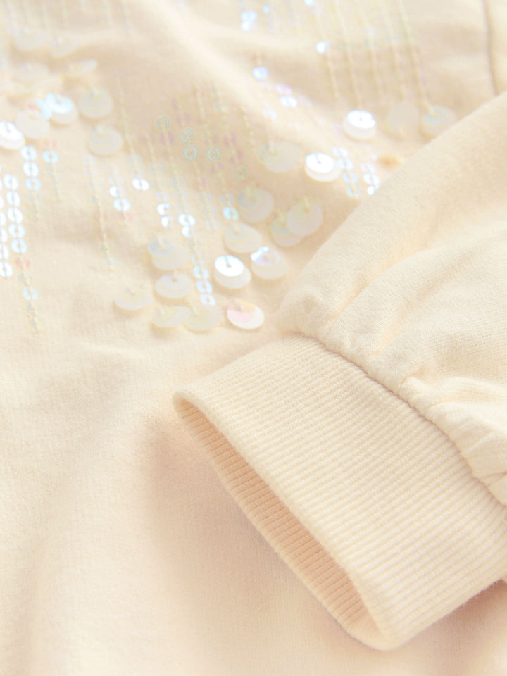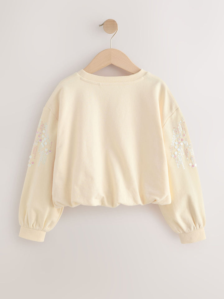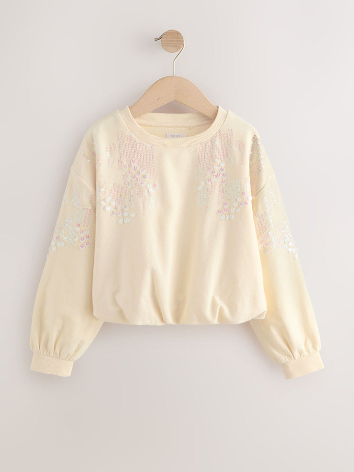Cream Long Sleeve Sequin Bubble Hem Sweat Top (3-16yrs)