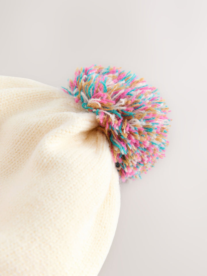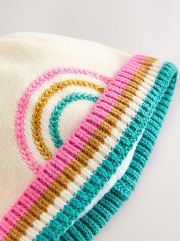 Cream Rainbow Embroidered Baby Knitted Pom Hat (0mths-2yrs)