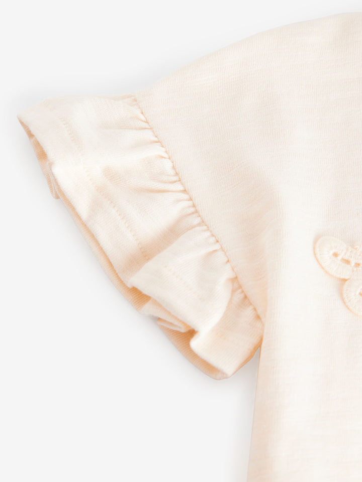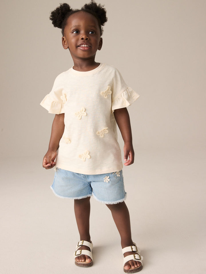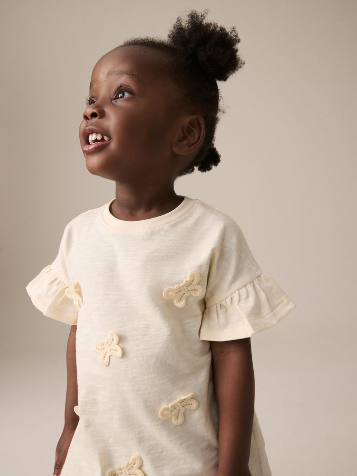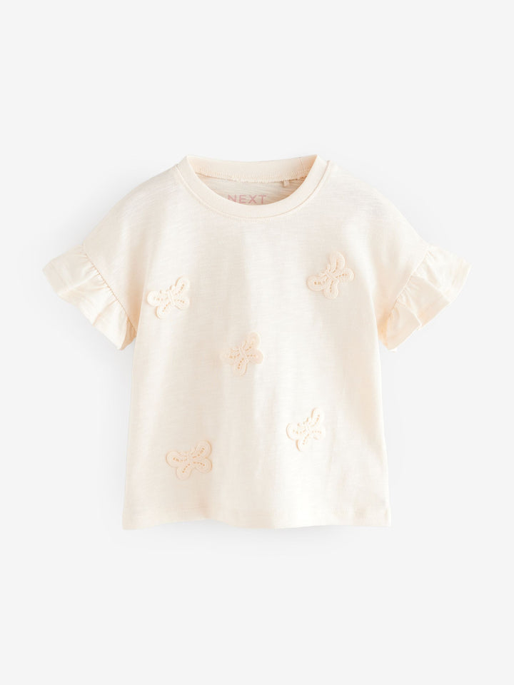 Cream Short Sleeve Butterfly Appliqué 100% Cotton T-Shirt (3mths-7yrs)