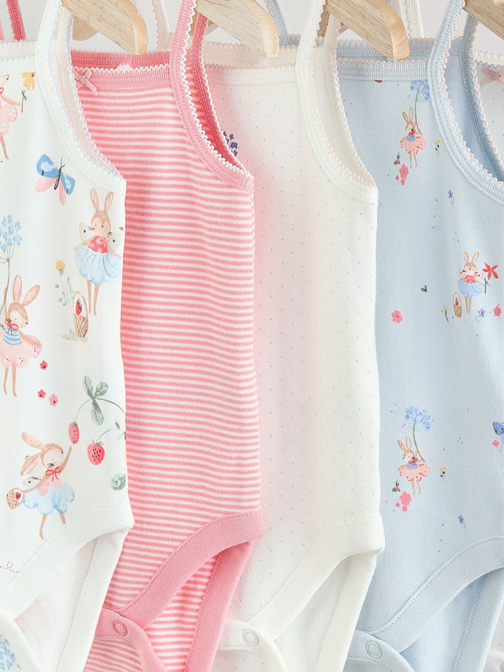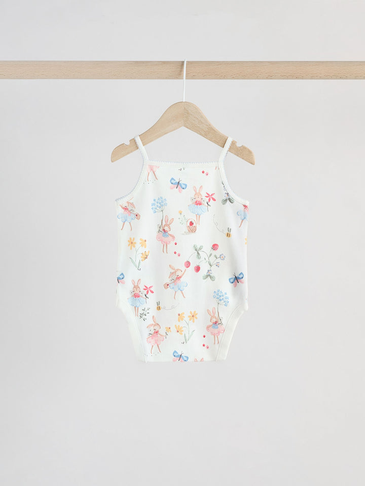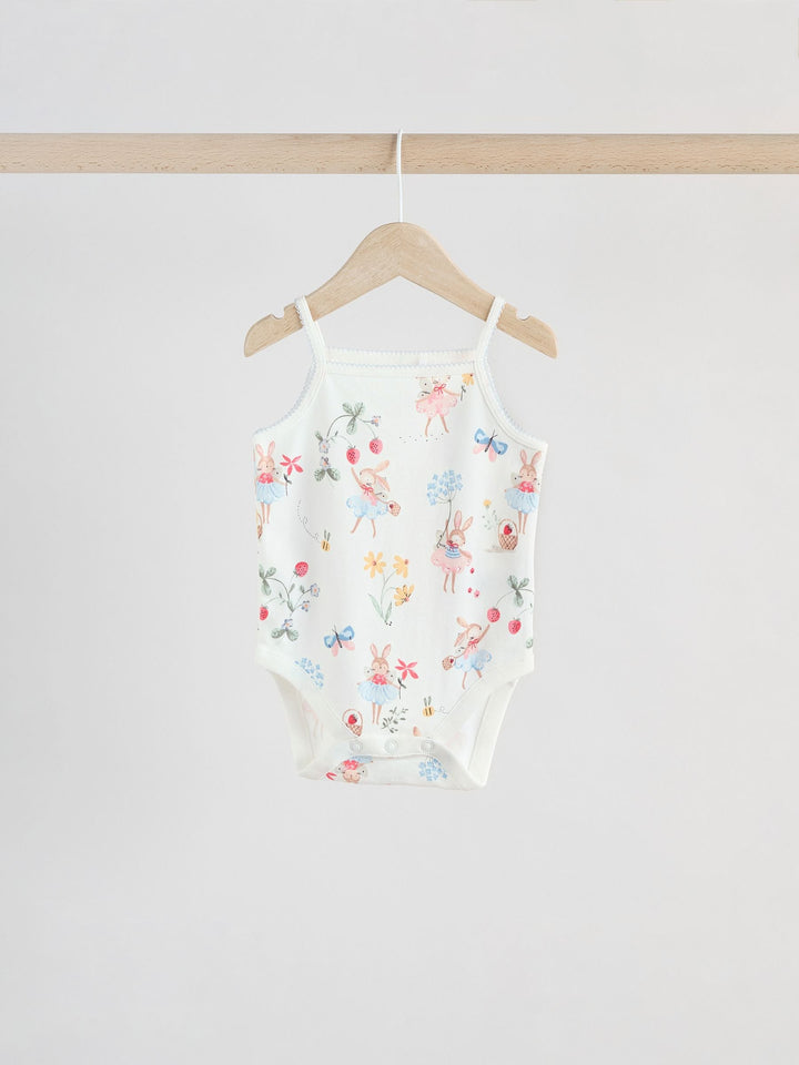 Cream Strawberry Bunny 5 Pack Vest Baby Bodysuits