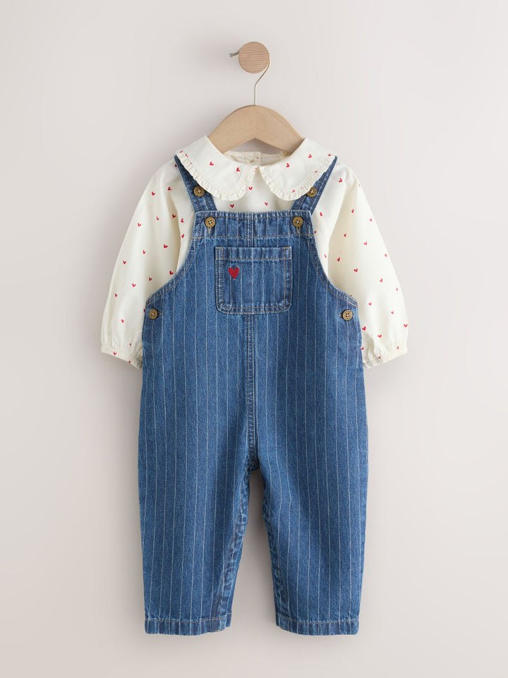 Dark Blue Denim Dungaree and Heart Print Blouse Set (3mths-7yrs)