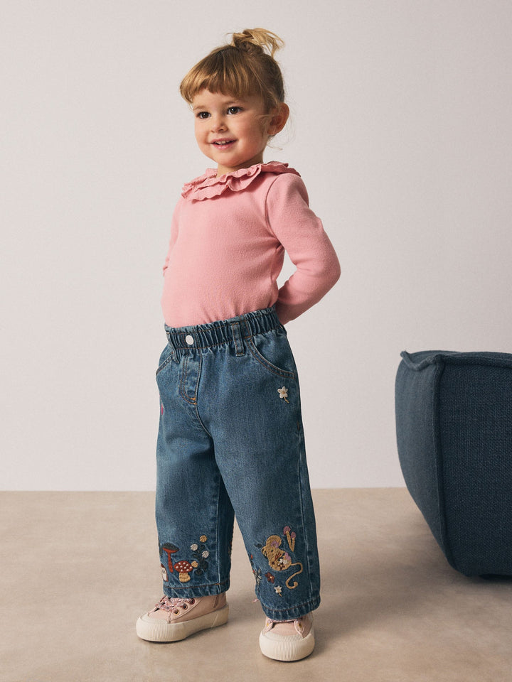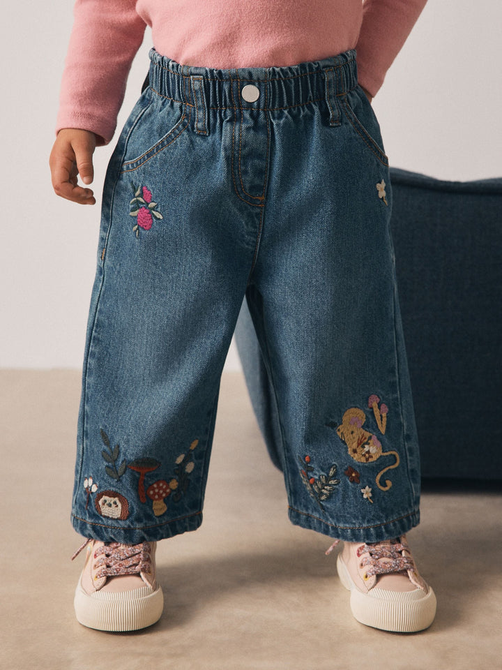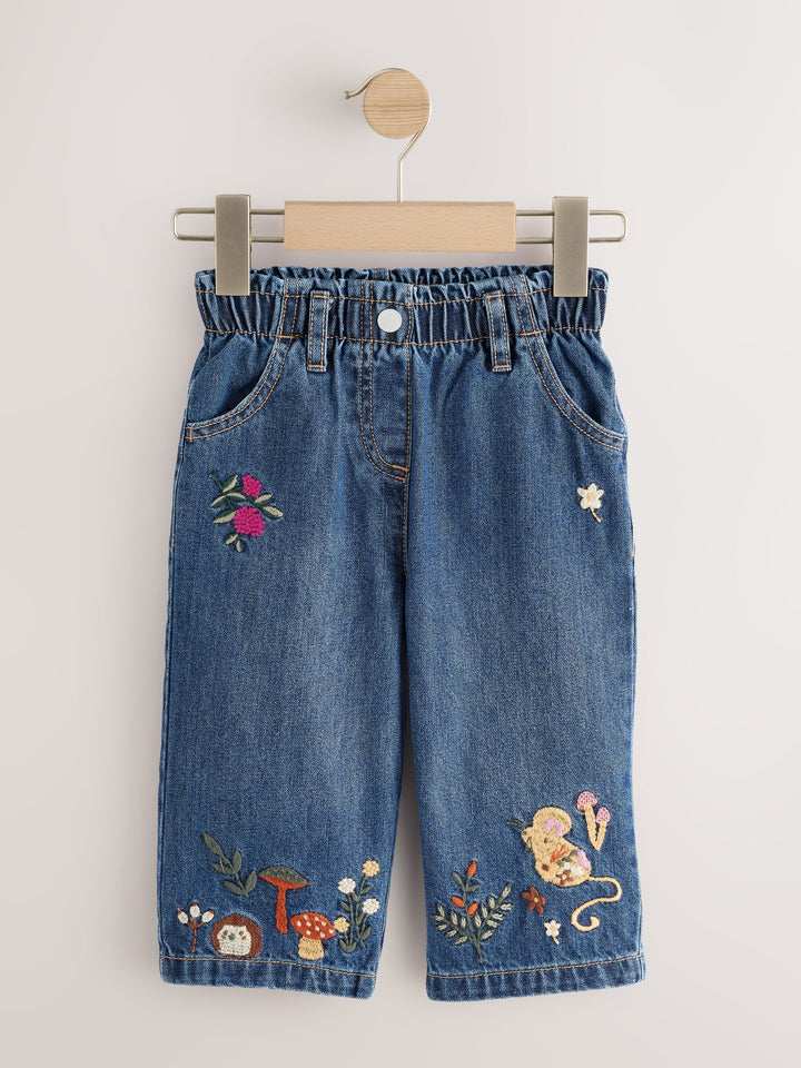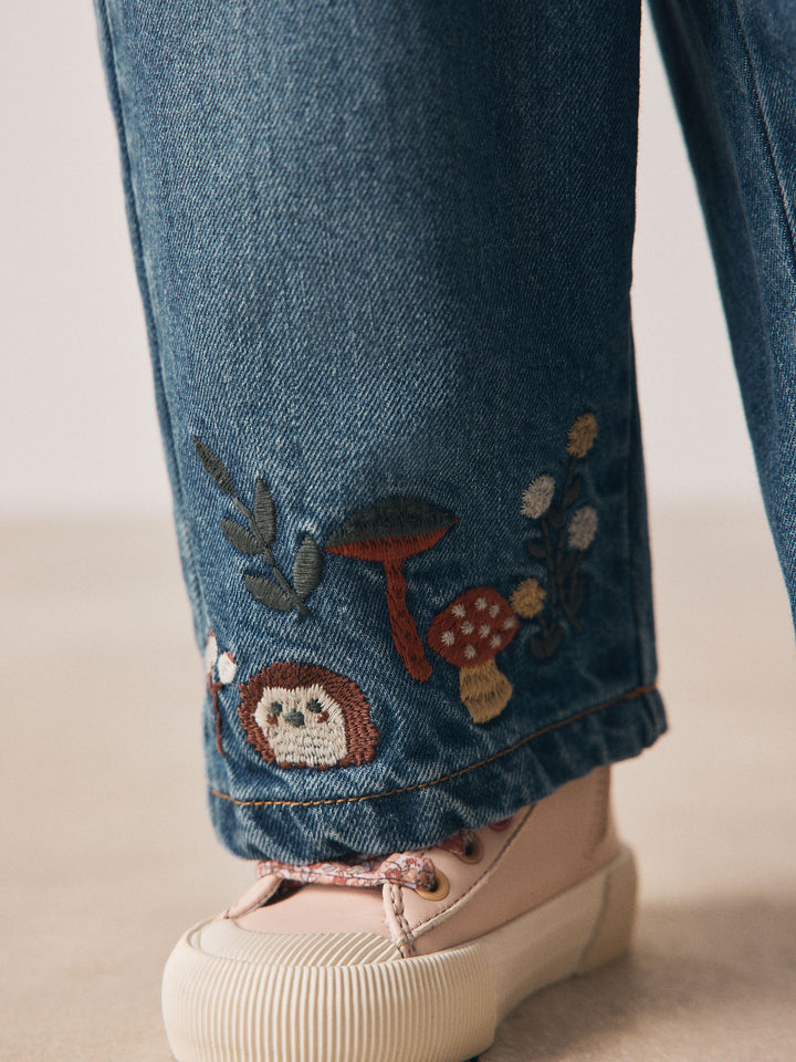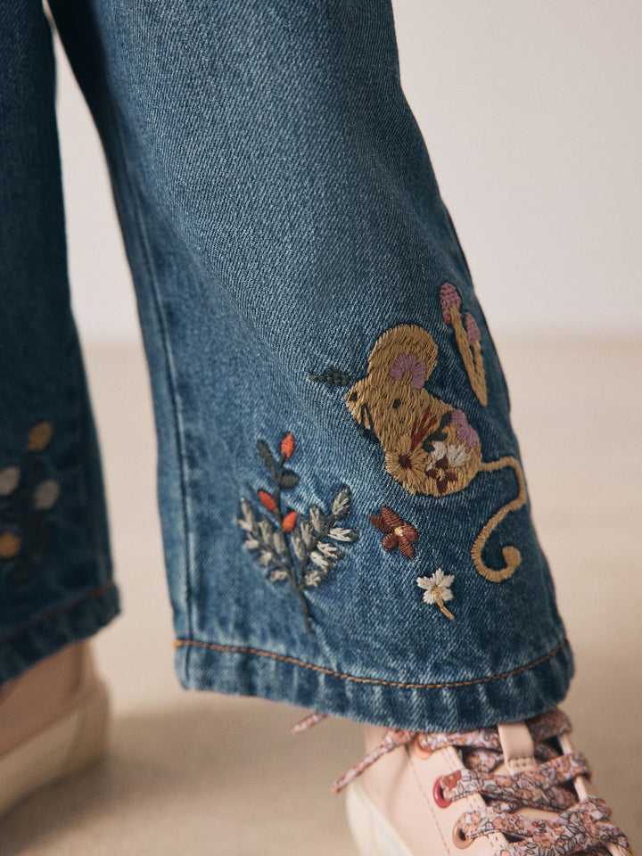 Dark Blue Mouse Embroidered Jeans (3mths-7yrs)
