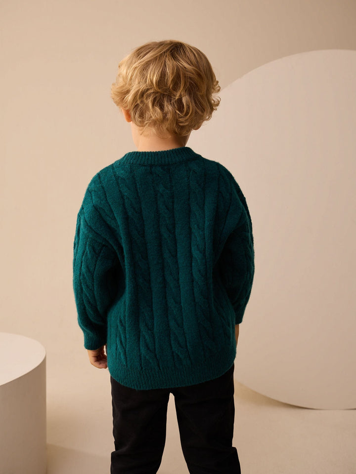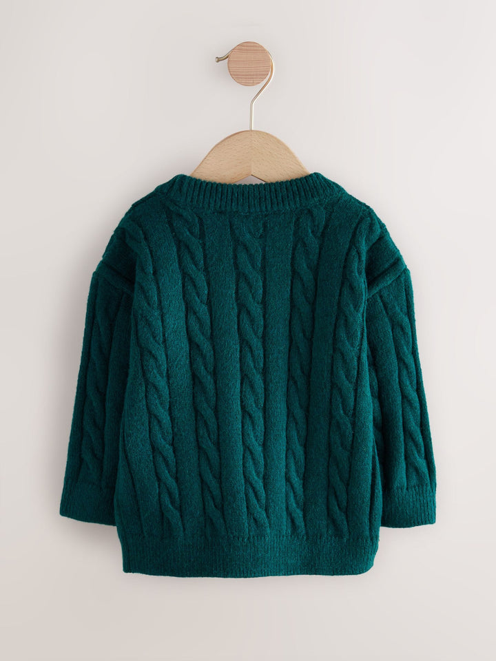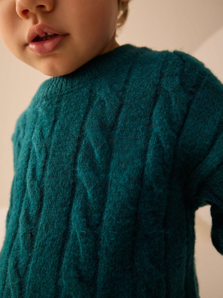 Dark Green Cable Knit Crew Neck Jumper (3mths-7yrs)