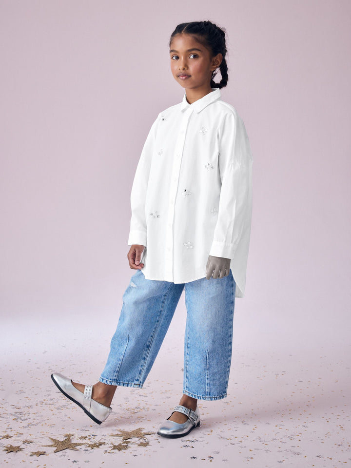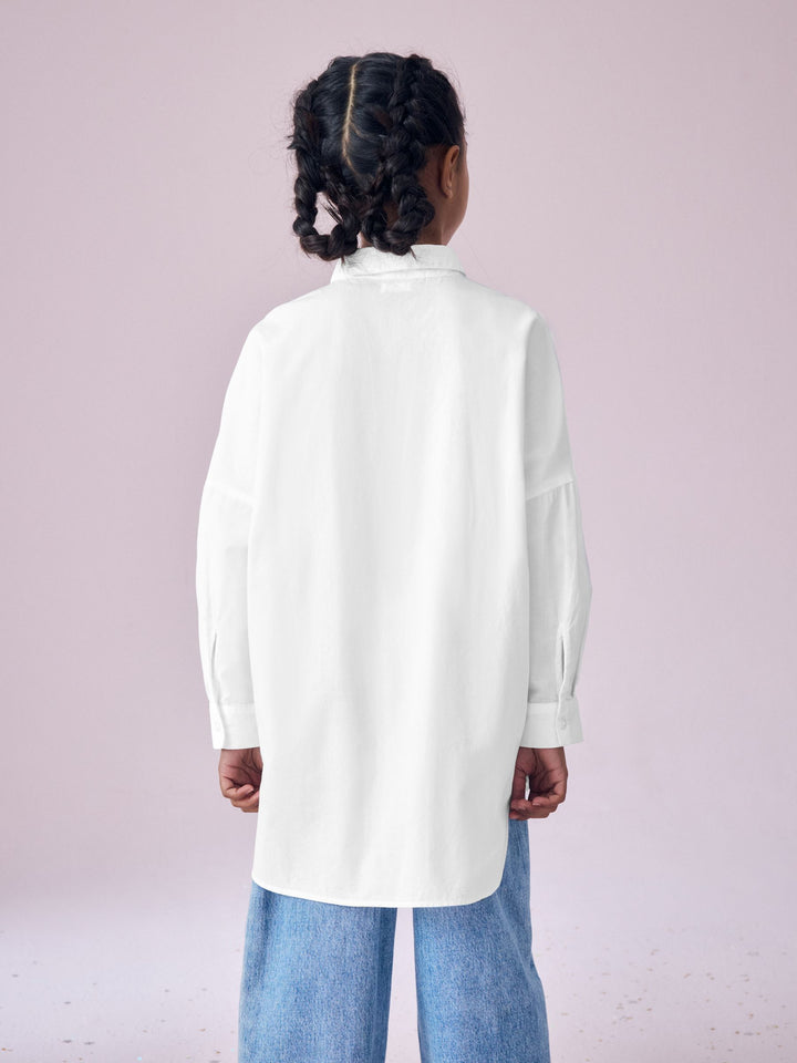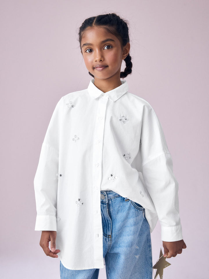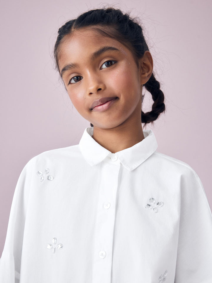 Diamante White Oversized 100% Cotton Shirt (3-16yrs)