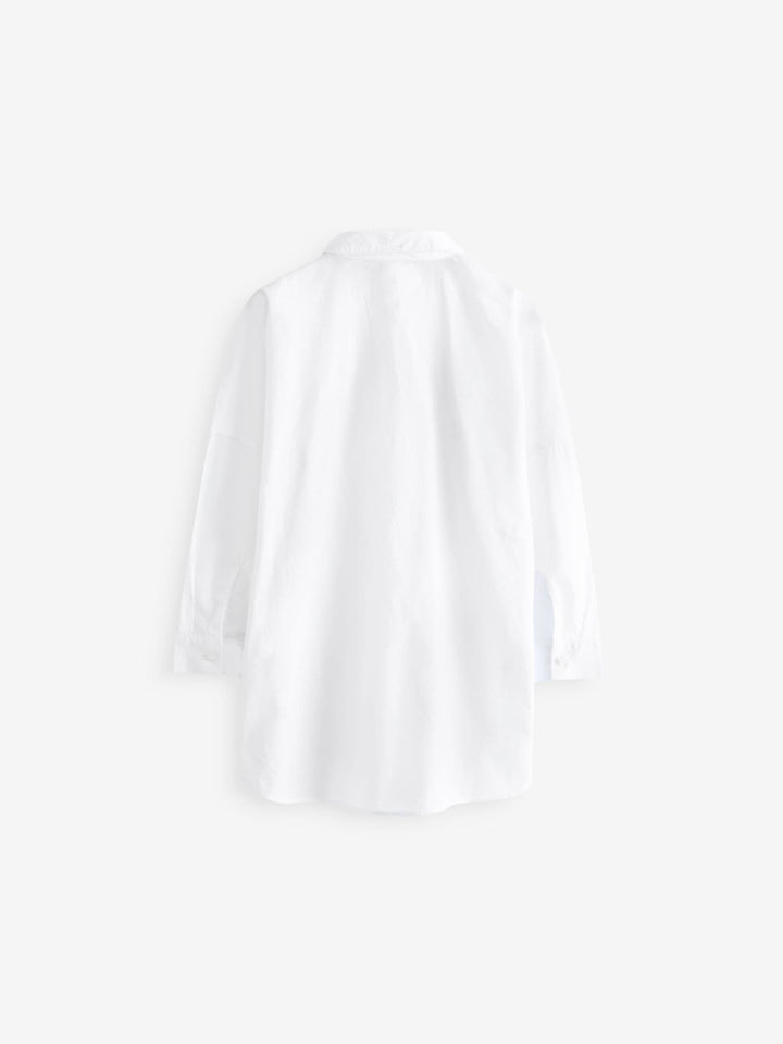 This oversized Diamante White shirt can be worn like a dress with it's longline shape, made from pure cotton with a button-up fastening, a chest pocket and a classic collar. 100% Cotton Collar neck Pocket detail Button-through front fastening 100% Cotton. Country of Origin: India Better Cotton - By choosing our cotton products, you're supporting our investment in Better Cotton's mission to help cotton farming communities survive and thrive while protecting and restoring the environment. This product is sourced via a system of mass balance and therefore may not contain Better Cotton. Learn more at www.next.co.uk/better-cotton
