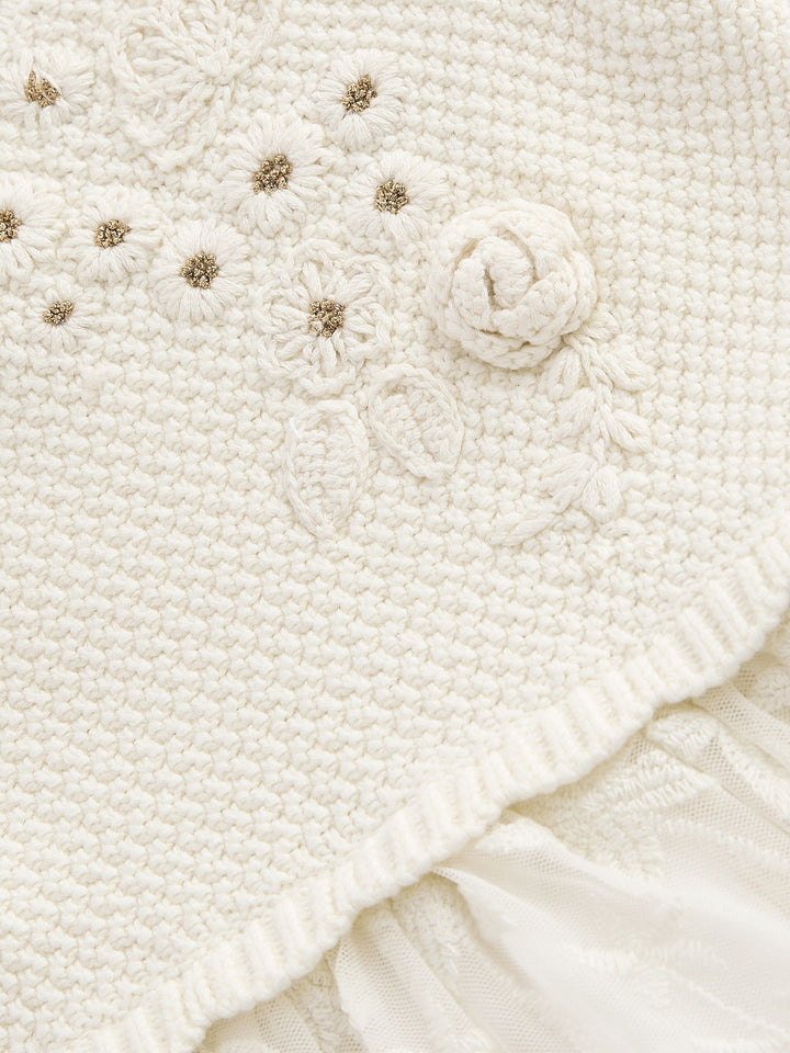 Ecru 2-in-1 Occasion Long Sleeve Knitted Jumper Dress (3mths-10yrs)