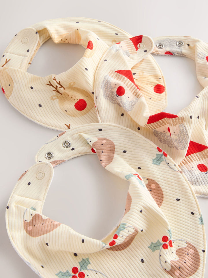 Ecru Baby Christmas Bibs 3 Pack