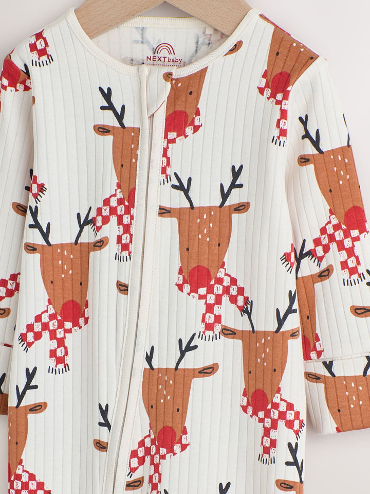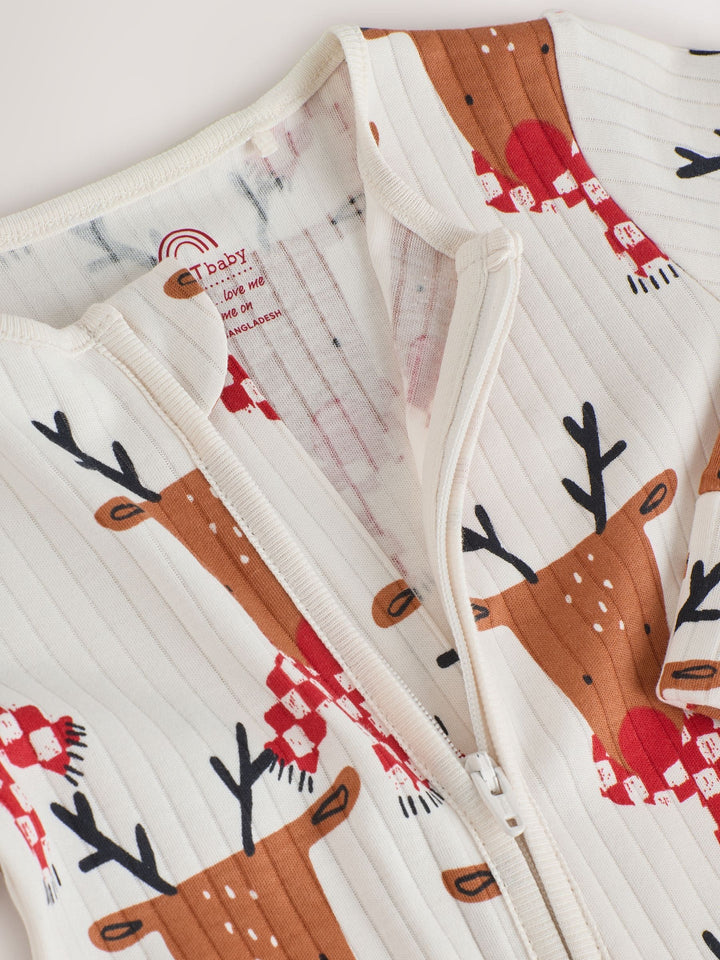Ecru Baby Christmas Reindeer Sleepsuit (0mths-3yrs)