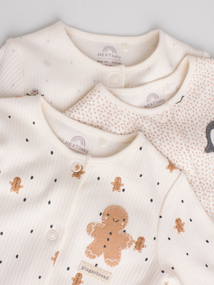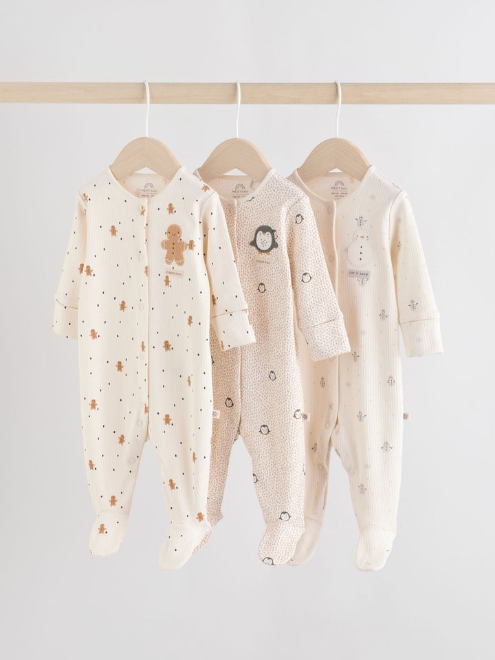 Ecru Baby Christmas Sleepsuits 3 Pack (0mths-2yrs)