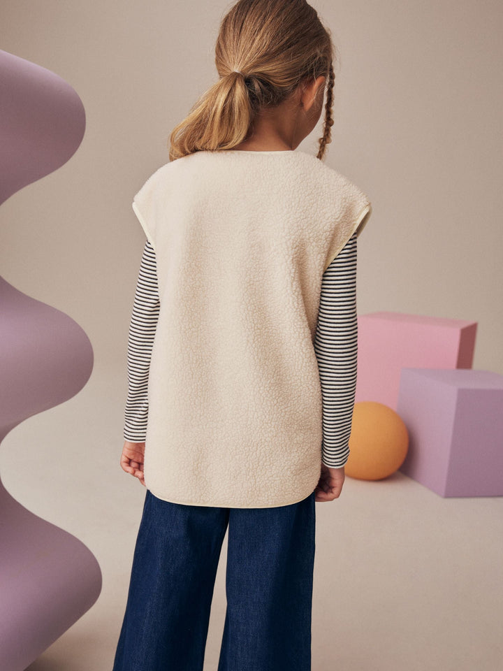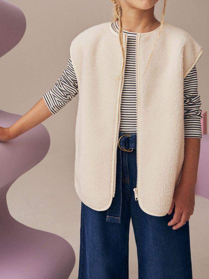 This soft fleece gilet is great for layering above their t-shirts or hoodies for added warmth, featuring a full-zip fastening, dual side pockets and a collarless design with a tonal trim. Regular fit Fleece fabric Zip fastening Collarless design Side pockets Machine washable. Main 100% Polyester. Lining 100% Polyester. Country of Origin: China