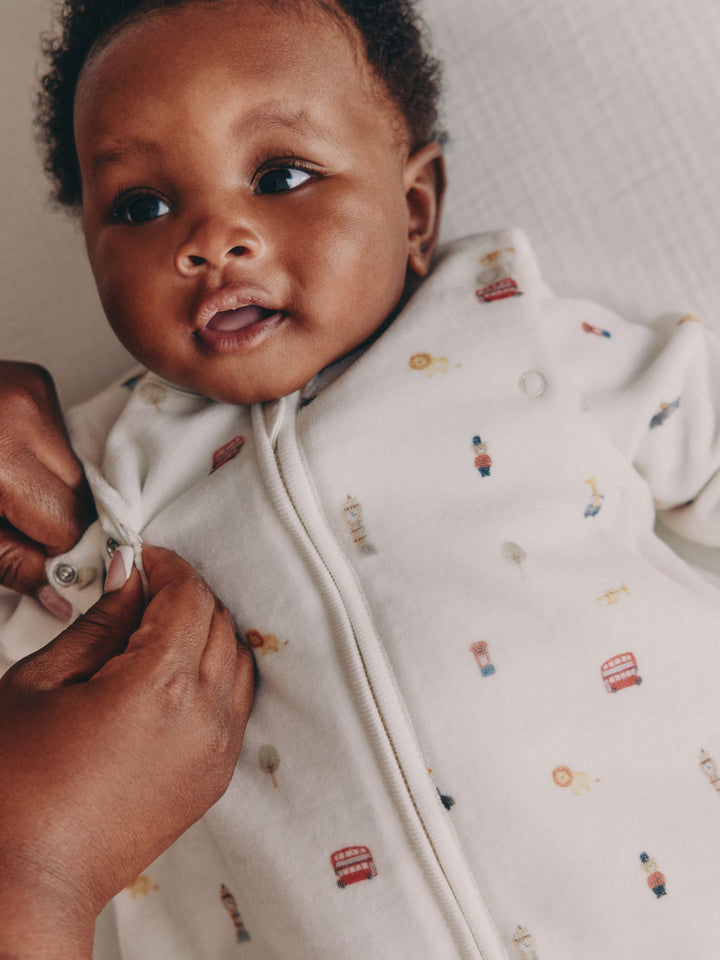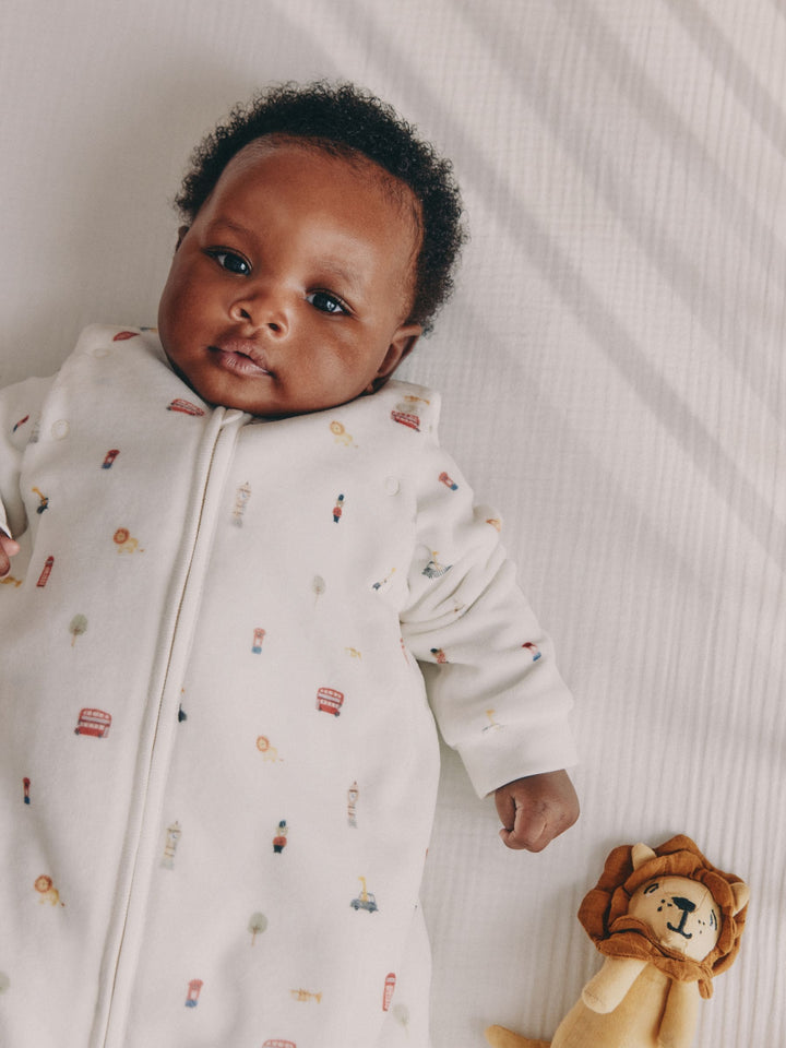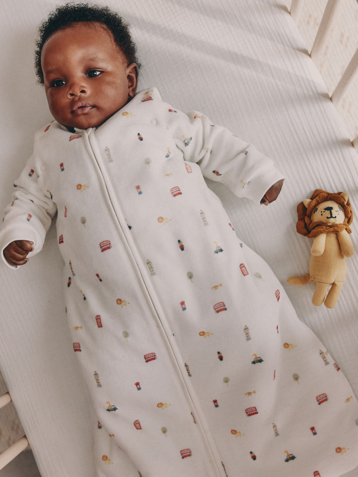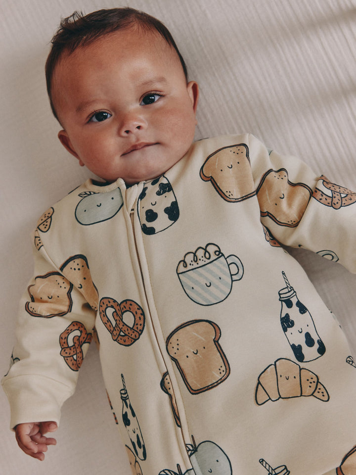 Ecru Breakfast Club 2.5 TOG Wadded Baby Sleepsuit