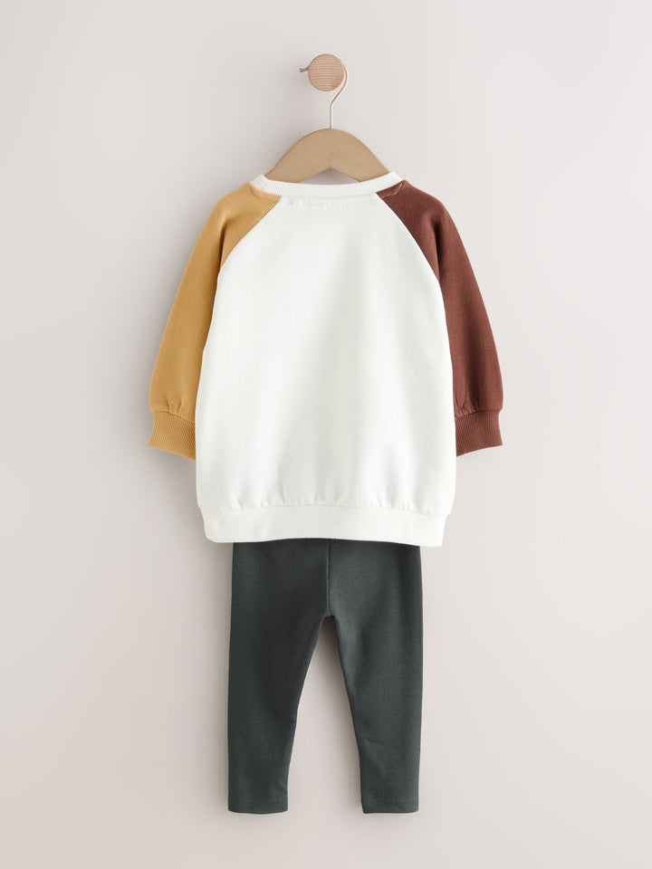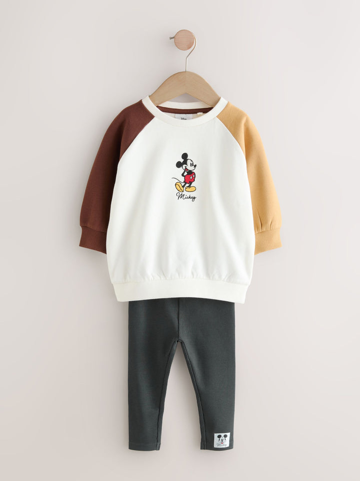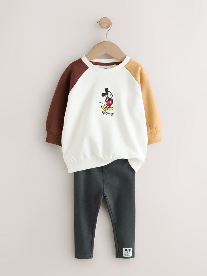 Ecru/Brown Mickey Mouse Crew Sweatshirt and Leggings Set (3mths-8yrs)