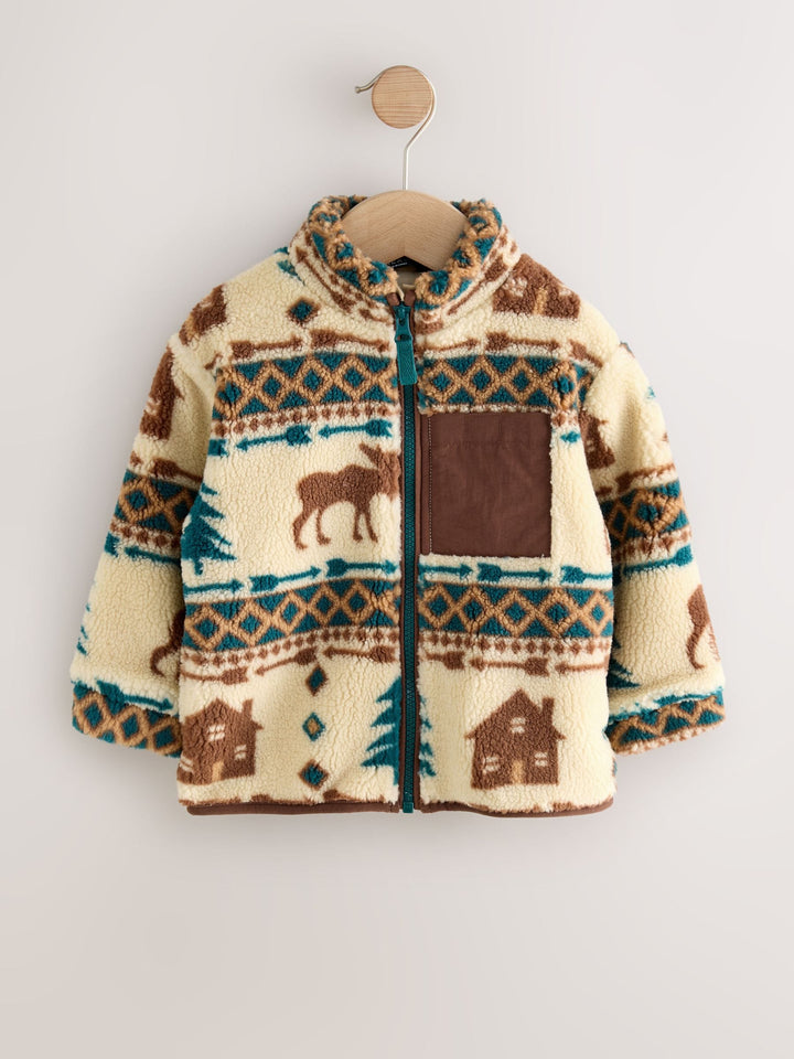 Ecru/Brown Patterned Zip Through Fleece (3mths-7yrs)