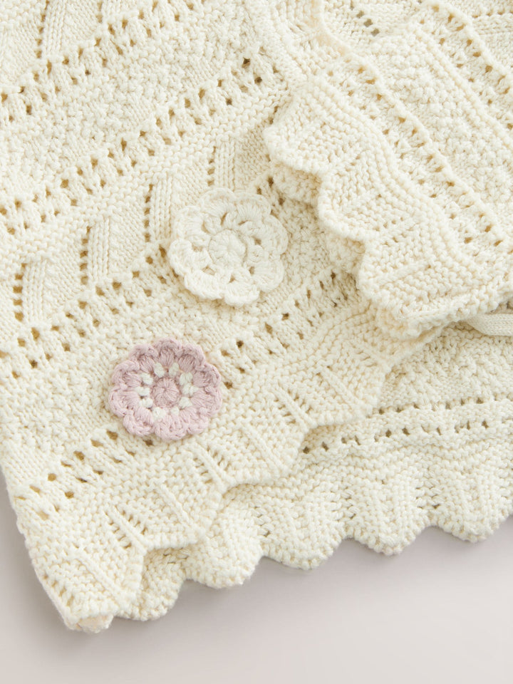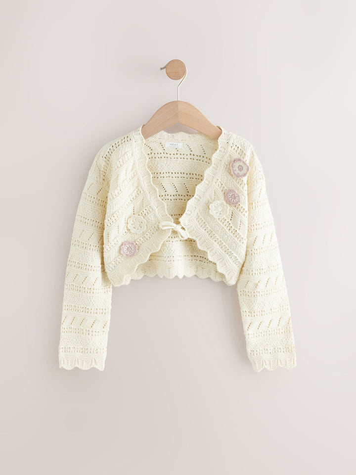 Wrap yourself in our ecru crochet cardigan. Perfect for dressing up outfits, this tie-front cardigan is adorned in embroidered floral motifs with scallop hem detailing. 100% cotton Crochet knit Embroidered floral design Tie-front fastening 100% Cotton. Country of Origin: Bangladesh