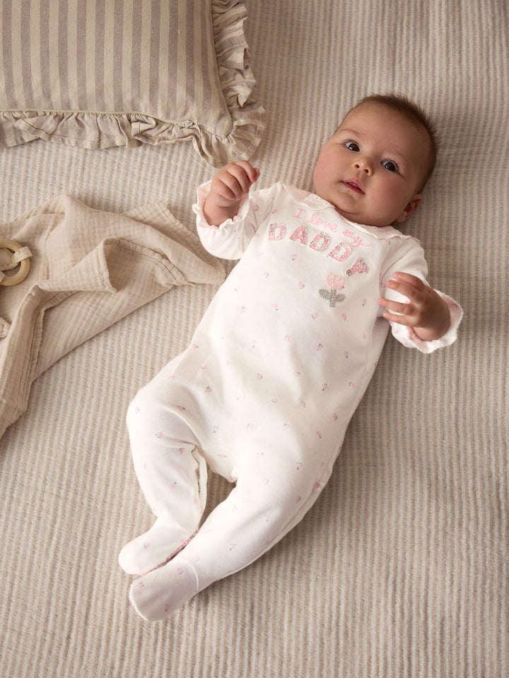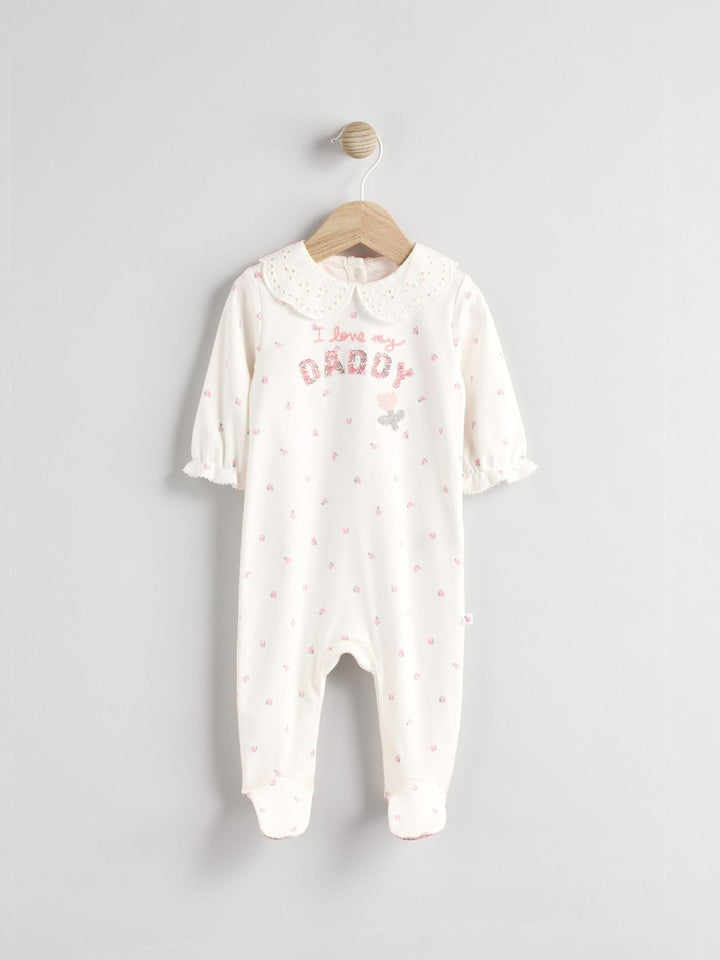 Ecru Daddy Baby Family 100% Cotton Sleepsuit (0-2yrs)