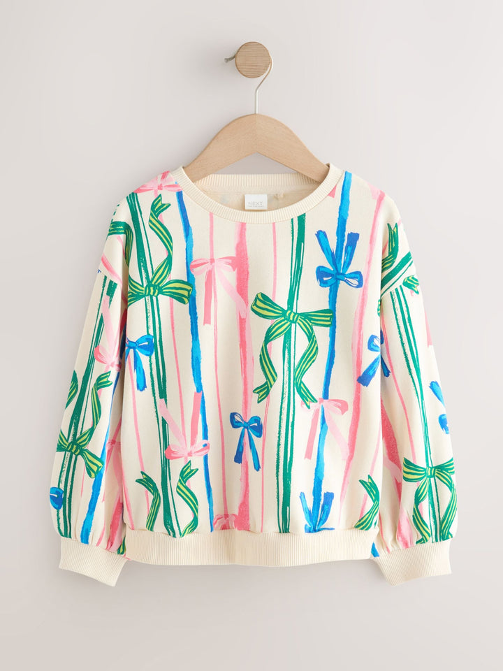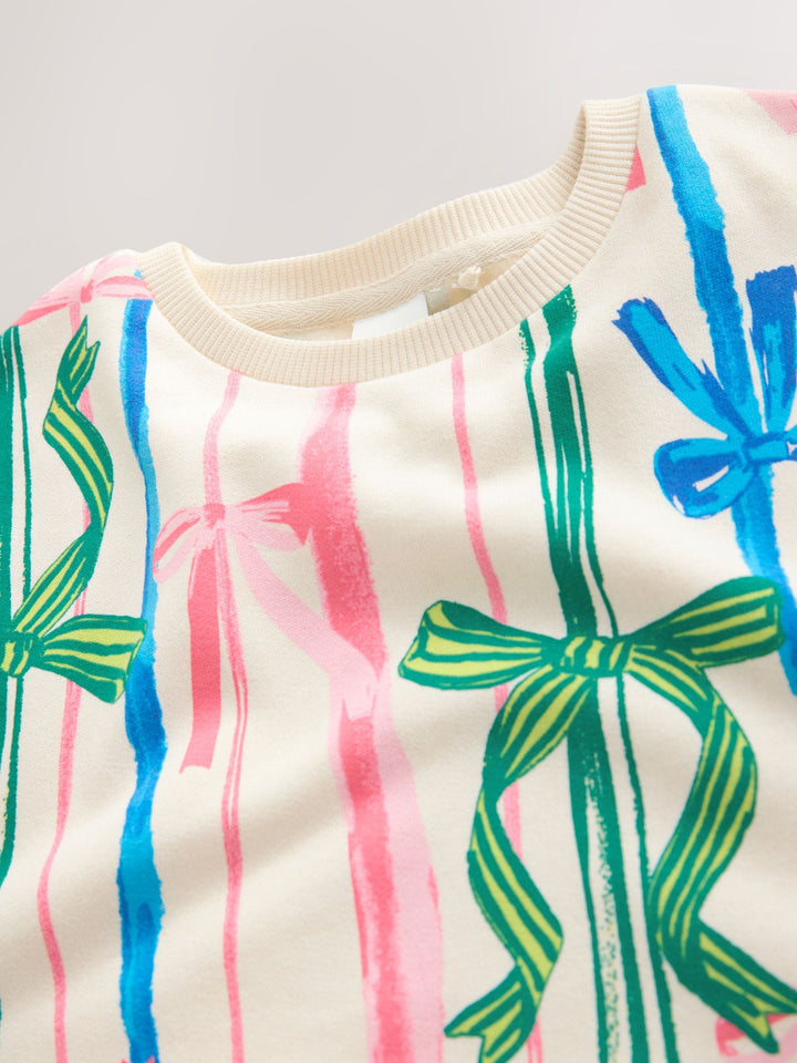 Ecru Ecru Bow Print Matching Family Christmas Sweatshirt (3-16yrs)