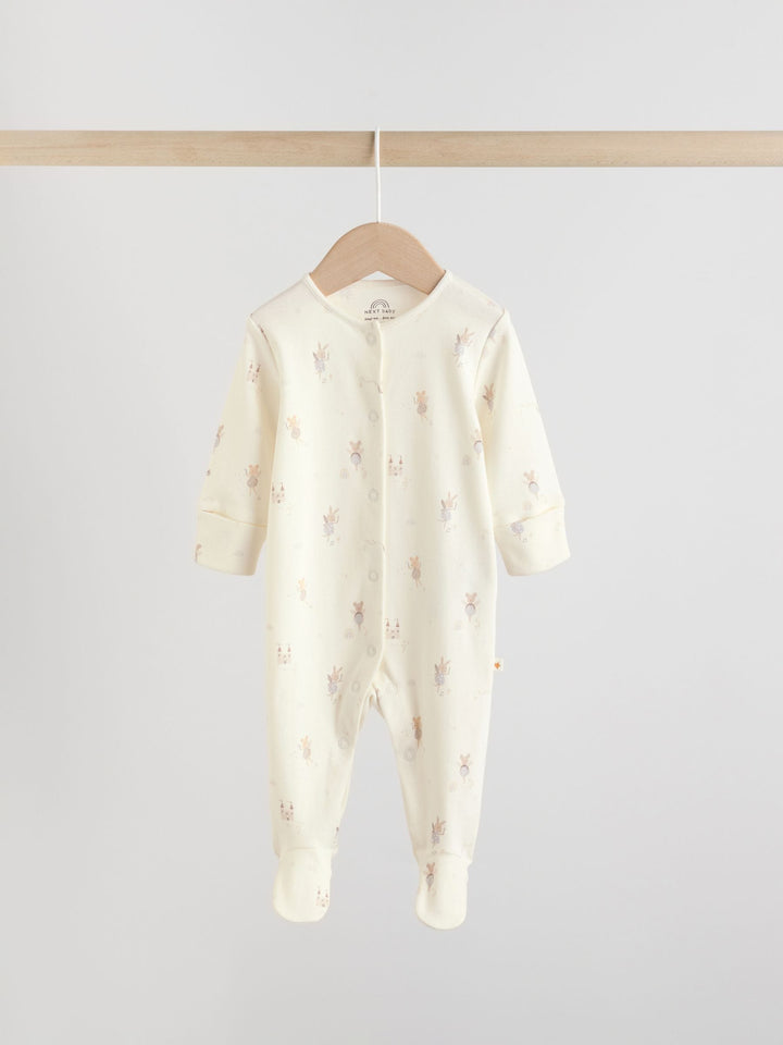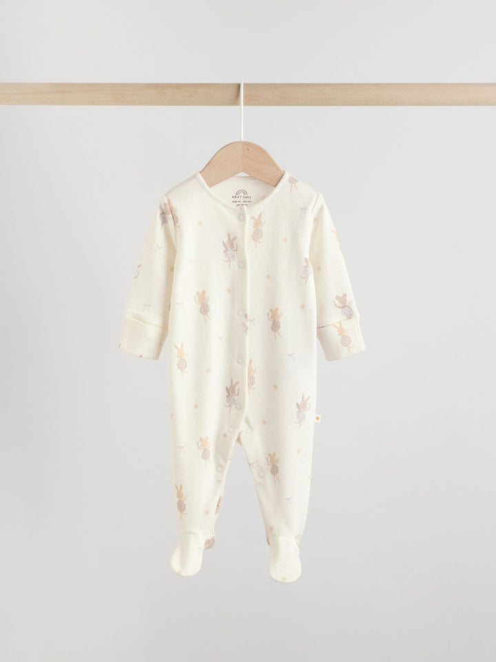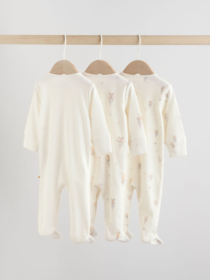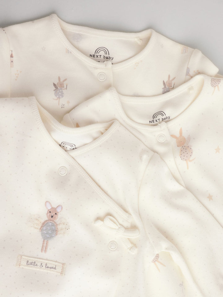 Ecru Fairy Mouse 3 Pack Baby Sleepsuits (0-2yrs)