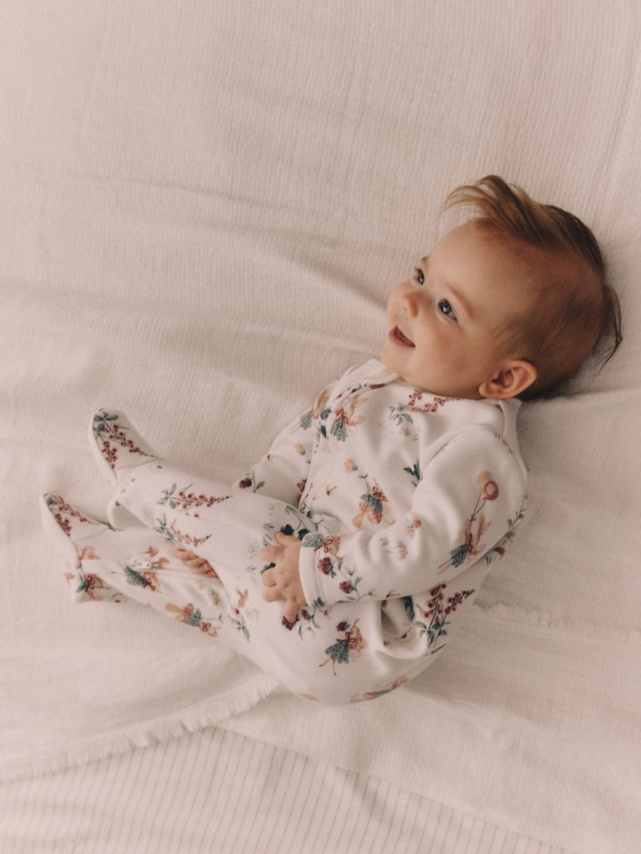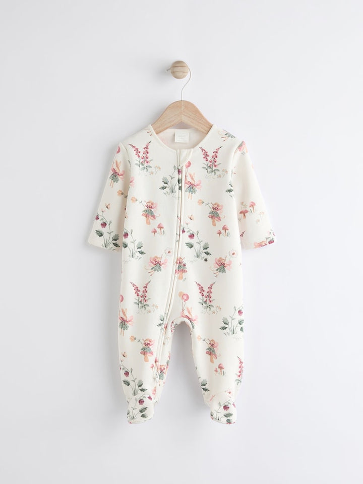 Ecru fairy Two Way Zip Fleece Lined Baby Sleepsuit immediate
