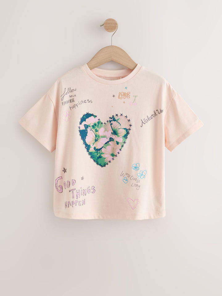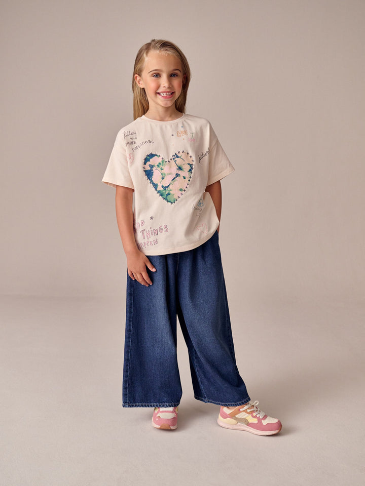 Ecru Heart Oversized Graphic Print T-Shirt (3-16yrs)