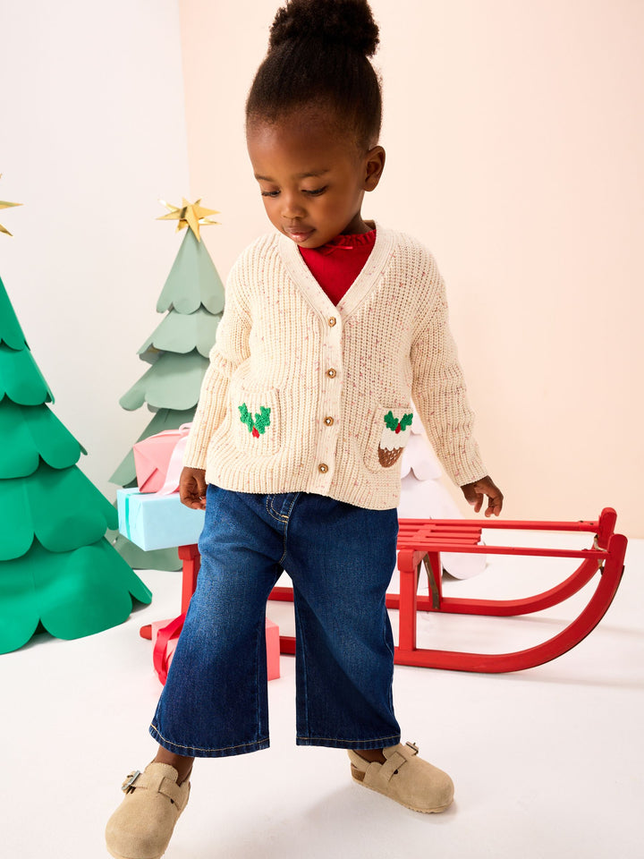 Ecru Holly Jolly Christmas Cardigan (3mths-10yrs)