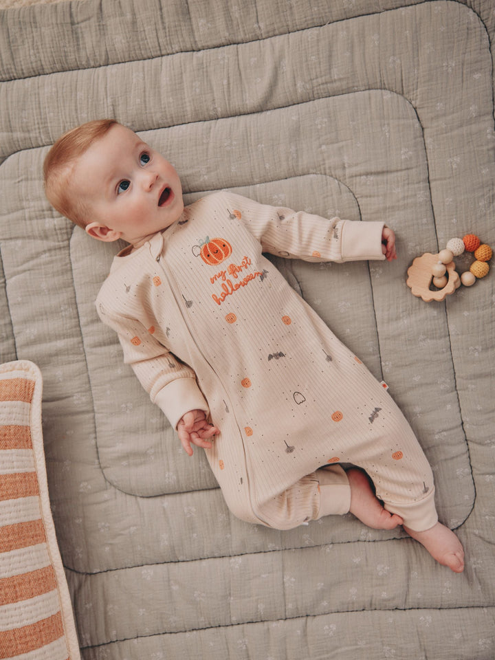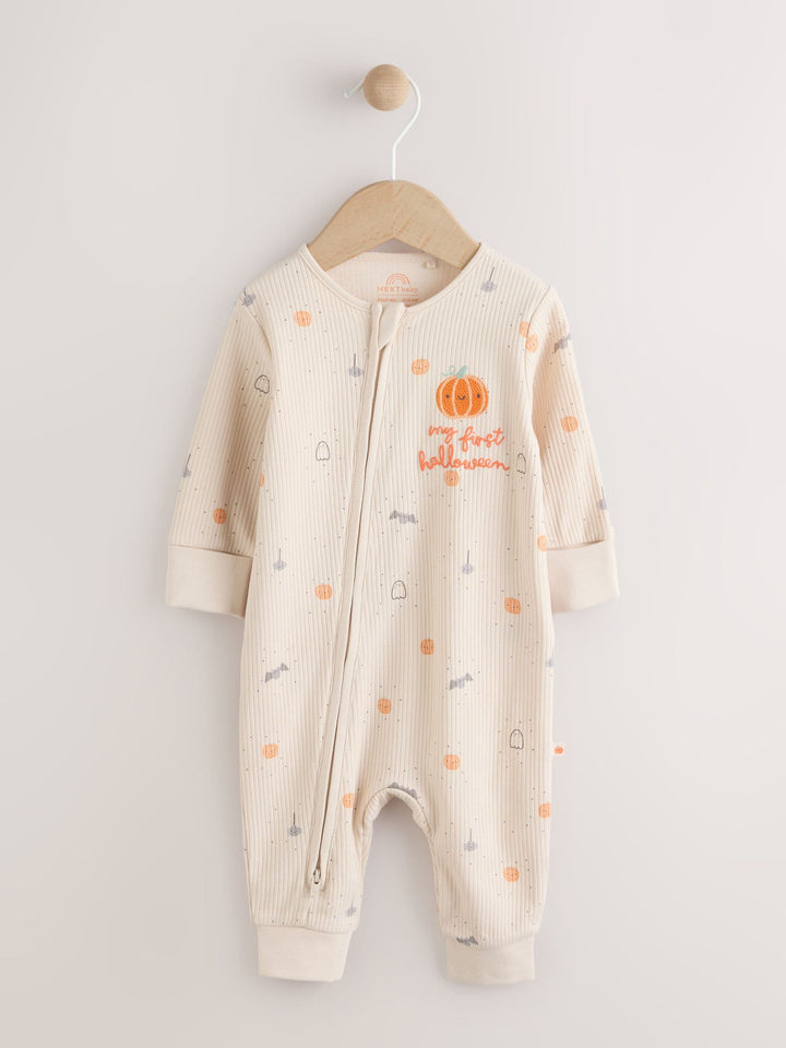 Ecru My First Halloween Two Way Zip Footless Baby Sleepsuit (0-18mths)