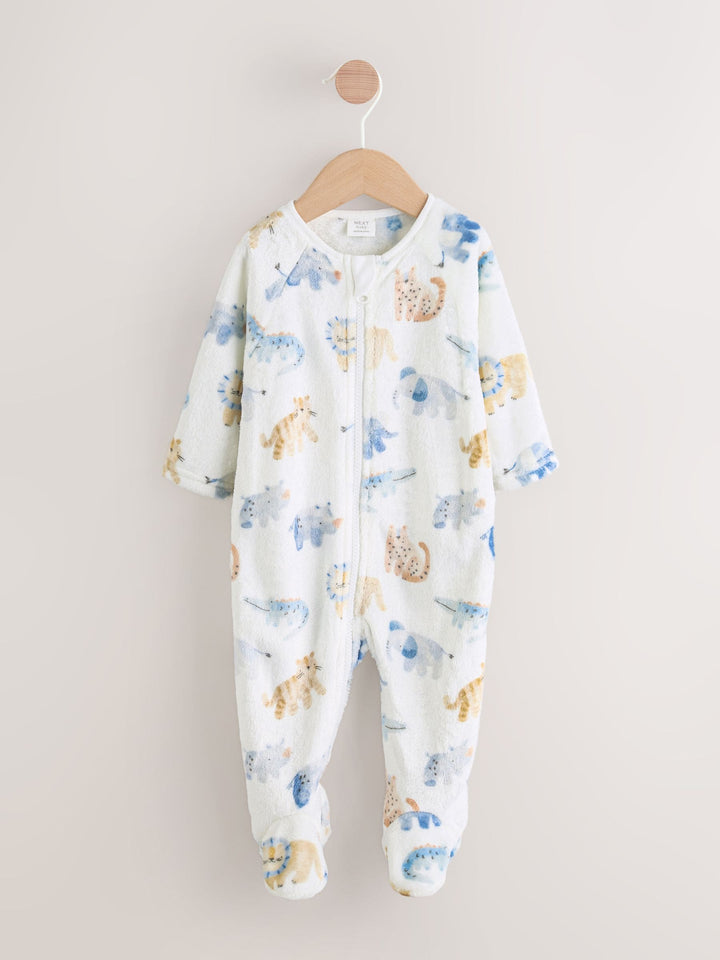 Ecru Safari Fleece Baby Sleepsuit