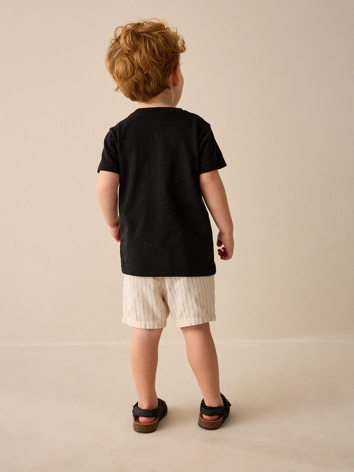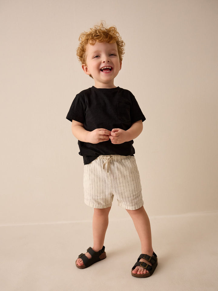 Ecru Stripe Linen Blend Pull-On Shorts (3mths-7yrs)