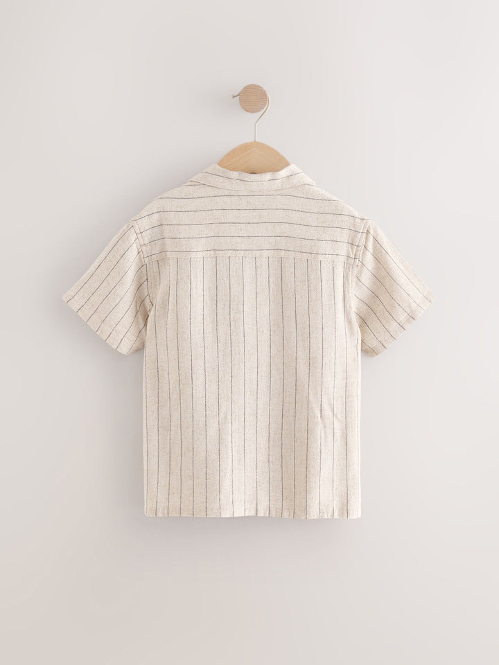 Ecru Stripe Short Sleeves Revere Collar Texture Shirt (3-16yrs)