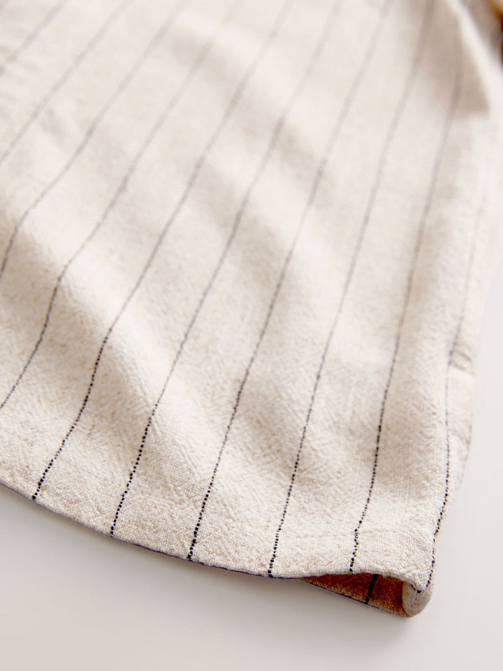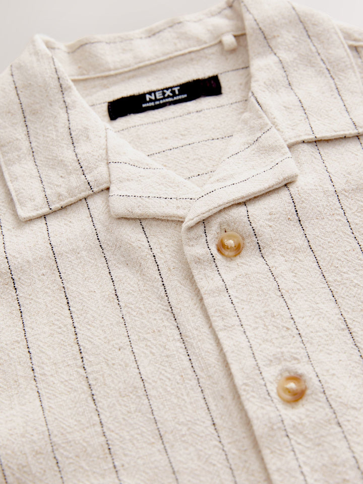 This woven ecru stripe cotton shirt is perfect for summer, with a textured feel, a button-down fastening and a revere collar, finished with a single chest pocket. 100% cotton Textured Woven fabric Revere collar Chest pocket 83% Viscose, 15% Linen, 2% Polyester. Country of Origin: Bangladesh