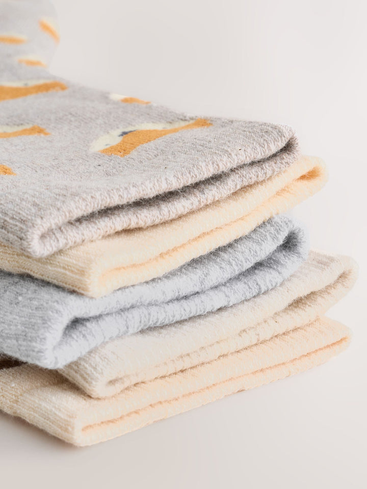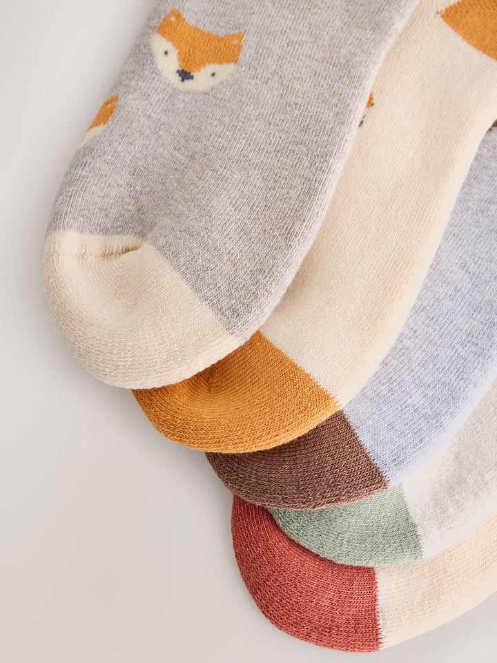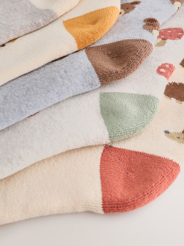 Ecru Woodland Animals Cosy Terry Cotton Rich Socks 5 Pack