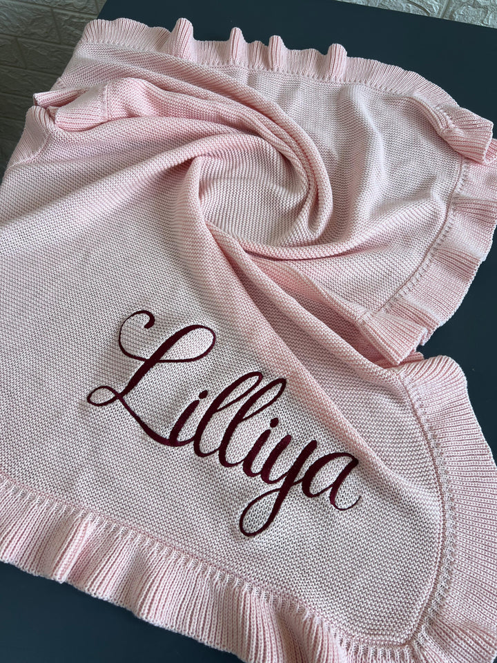 Emberioded Pink Knitted blanket "Lilliya" (on Sale)