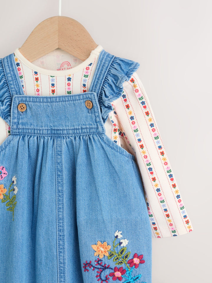 Embroidered Denim Baby Dungarees and Long Sleeve Bodysuit Set 2 Piece (0mths-3yrs)