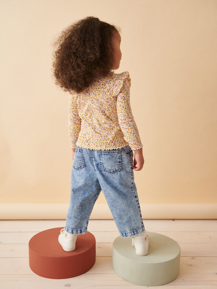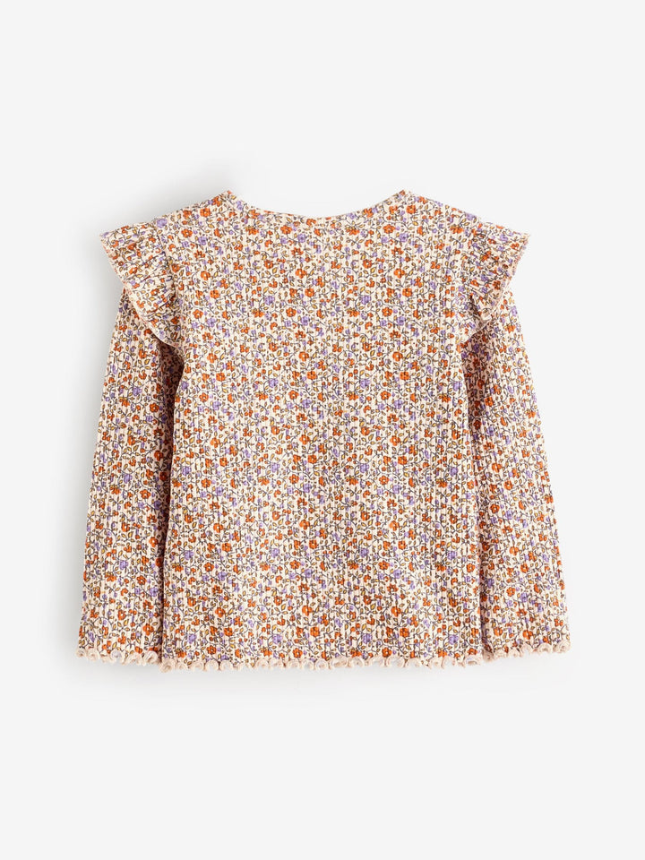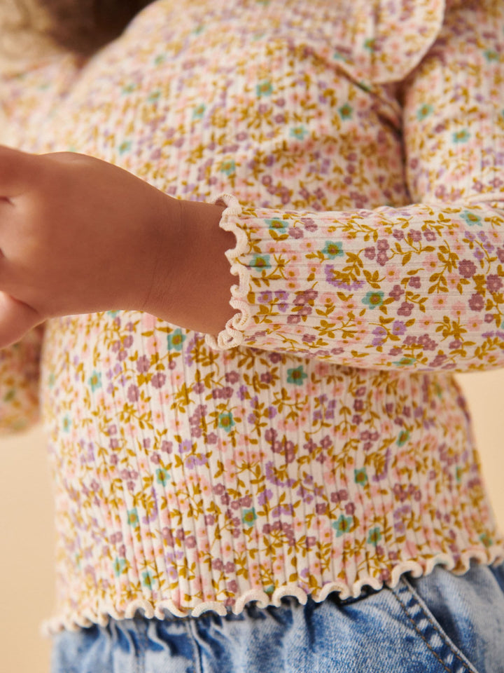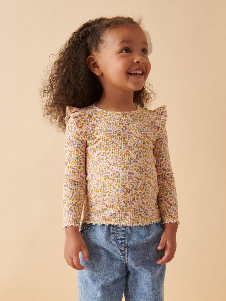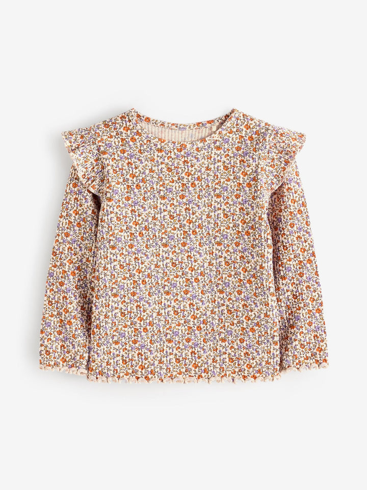 Floral Cotton Rich Long Sleeve Ribbed Frill T-Shirt (3mths-7yrs)