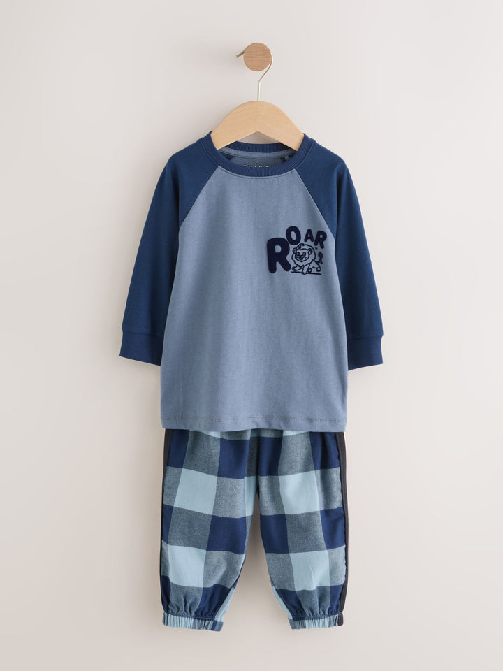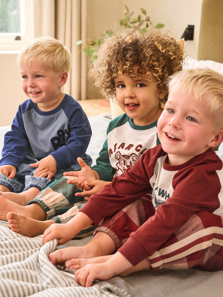 Red/Navy/Blue Vehicle Check Woven Bottom 100% Cotton Pyjamas 3 Pack (9mths-8yrs). Pyjama Top, Pyjama Bottom, Pyjama Top, Pyjama Bottom and Pyjama Bottom 100% Cotton. Pyjama Top 99% Cotton, 1% Viscose. Country of Origin: Bangladesh Warning: Keep away from fire and flames.