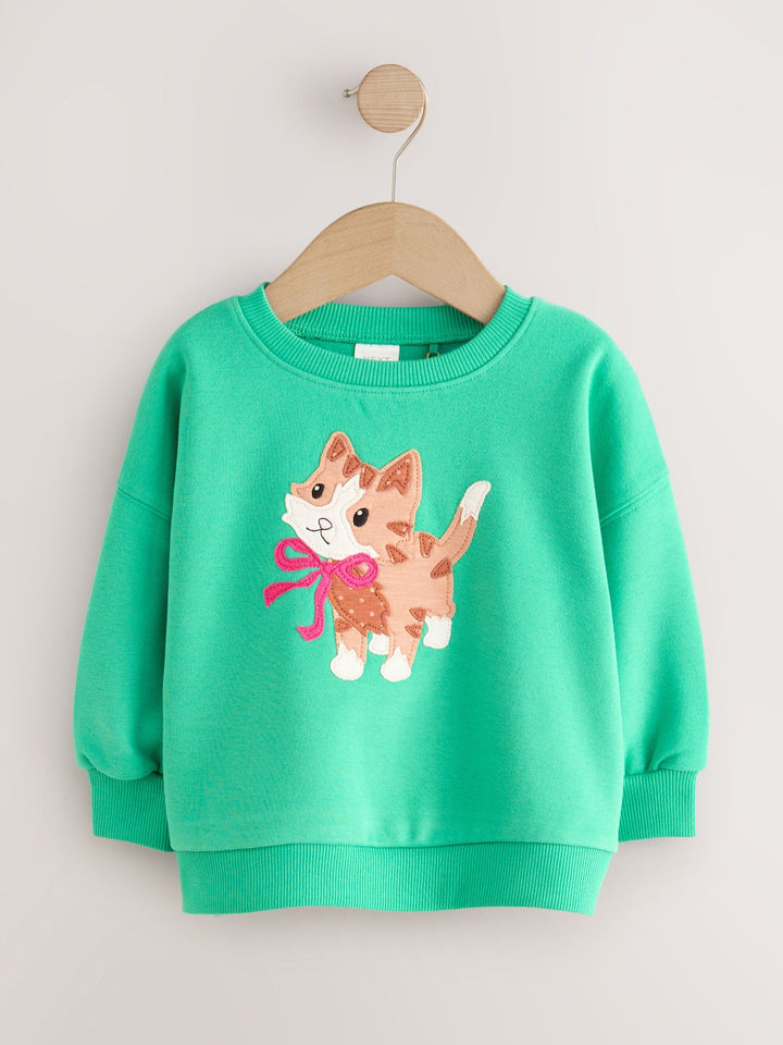 Green Cat Crew Neck Sweatshirt (3mths-7yrs)