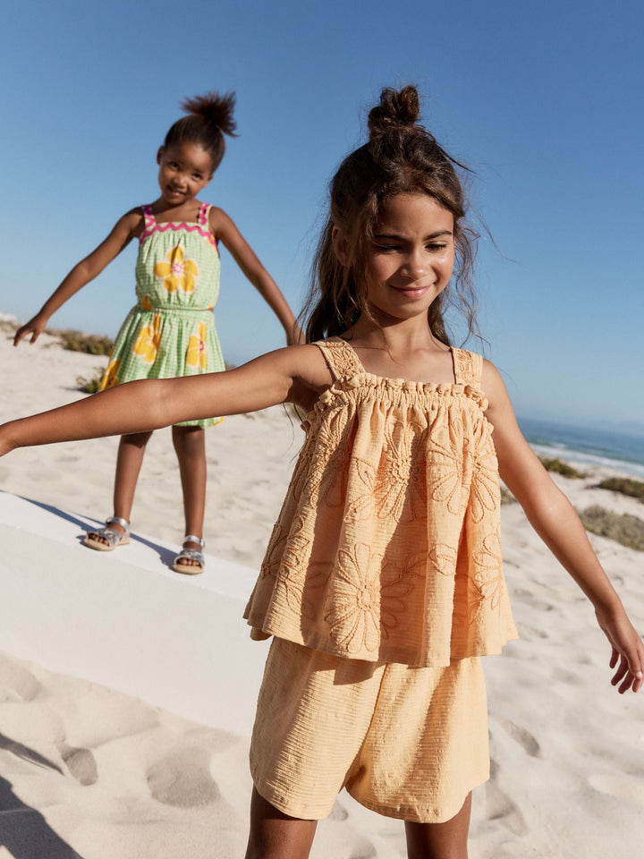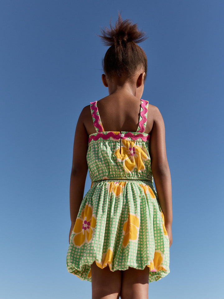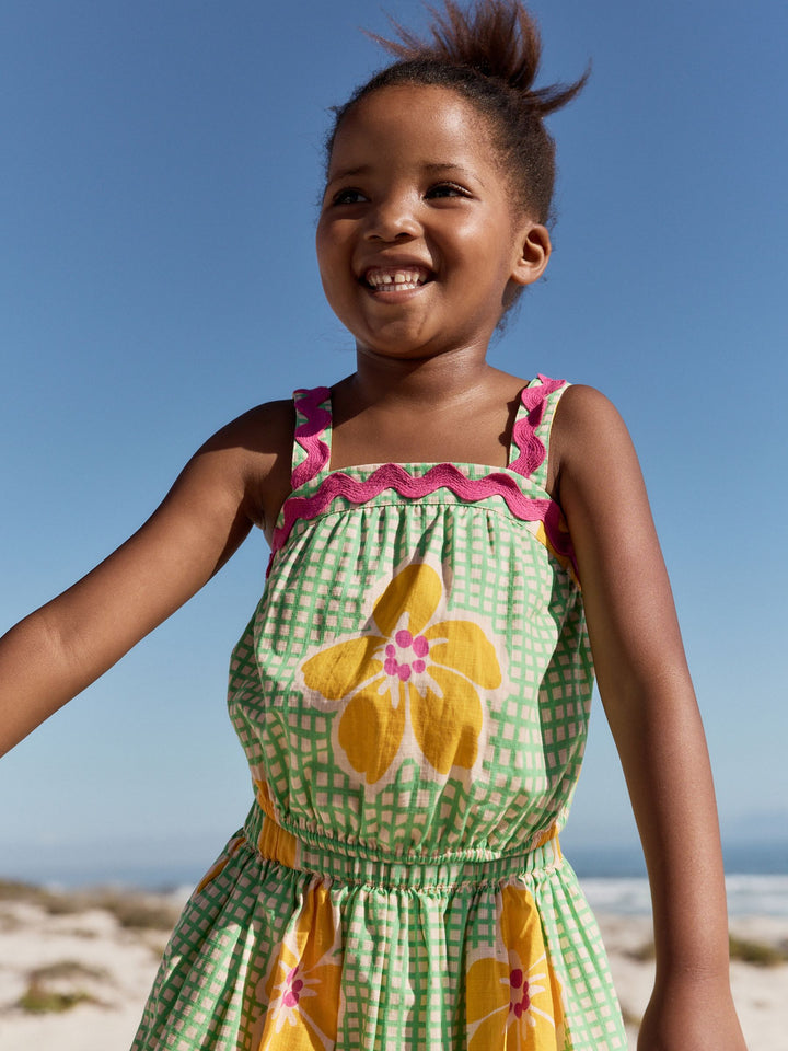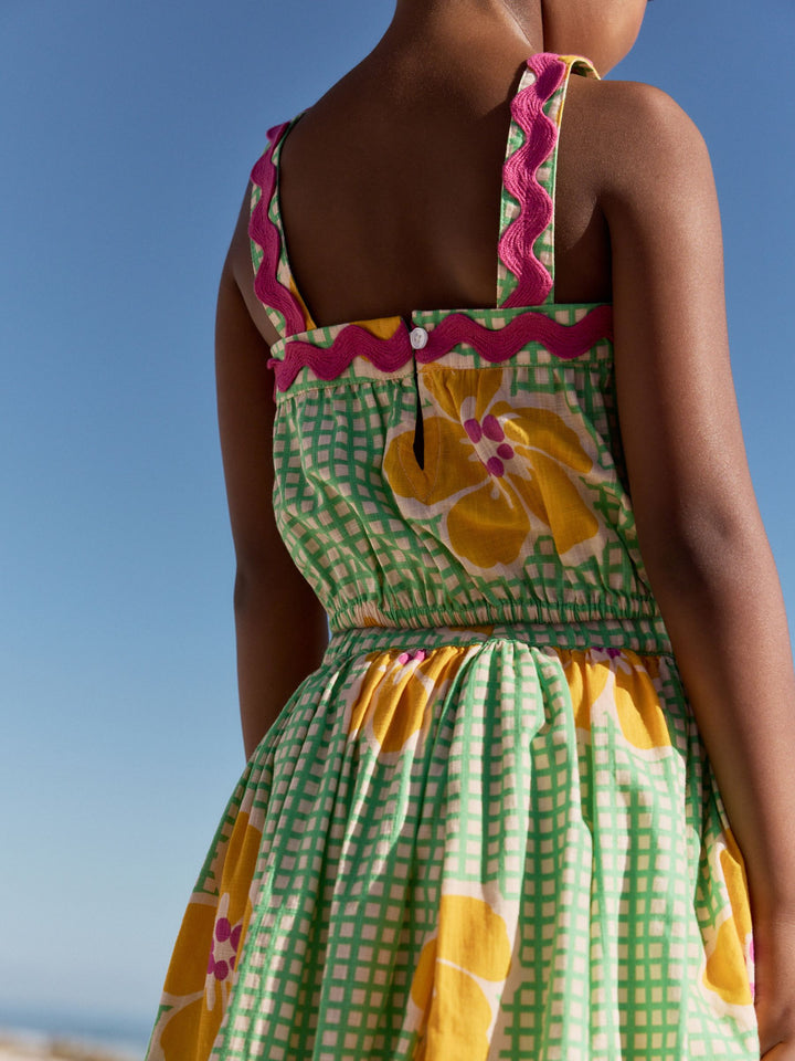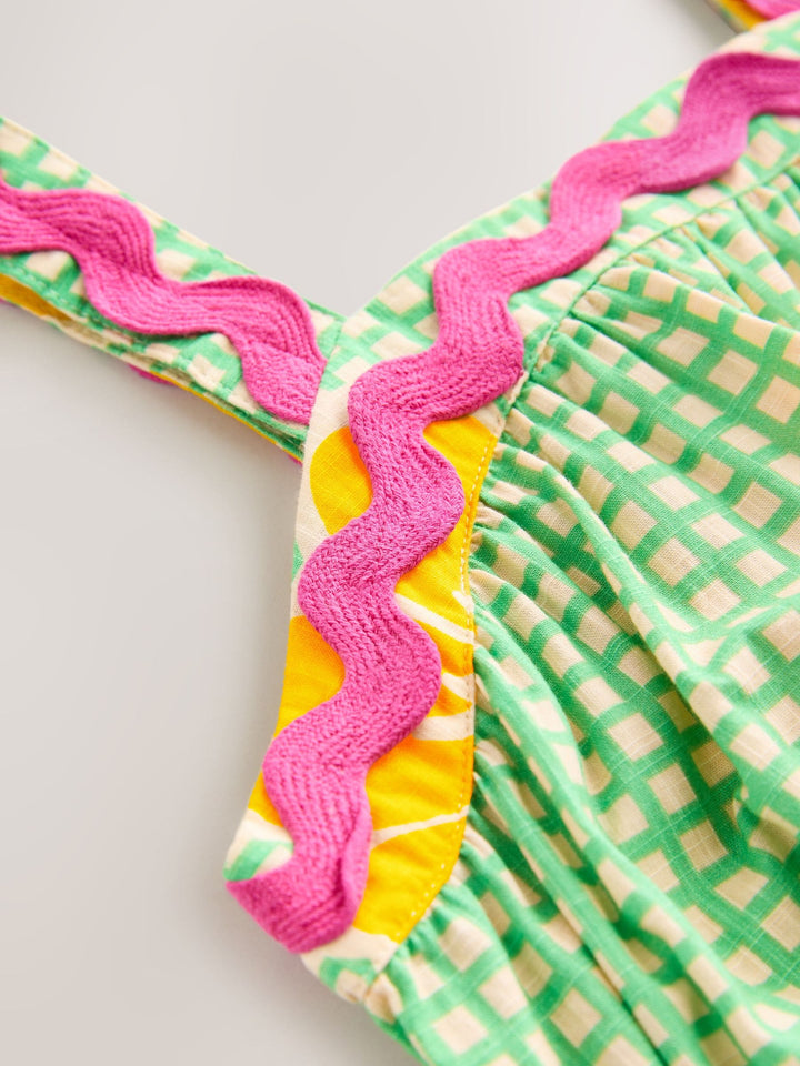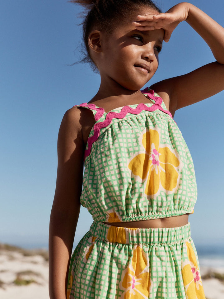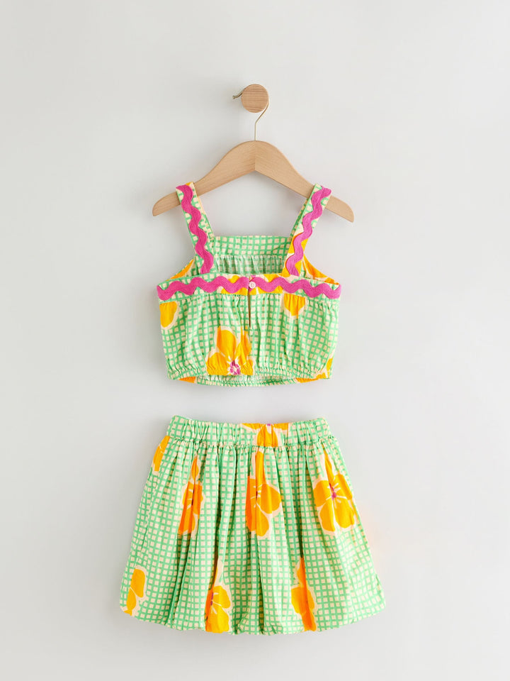 Green Check 100% Cotton Ric Rac Trim Top and Skirt Set (3-16yrs)