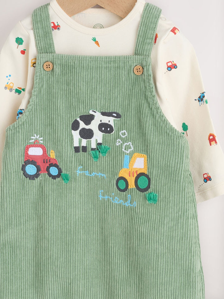 Green Farm Cord Dungarees and Bodysuit Baby Set (0mths-2yrs)