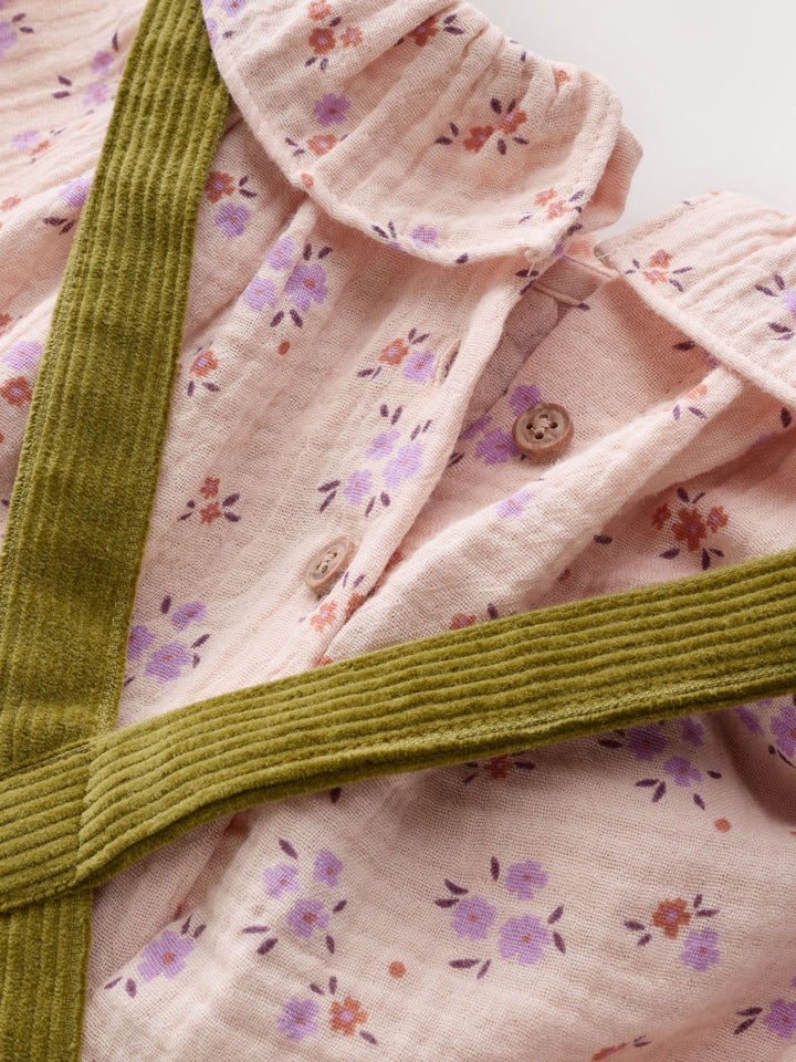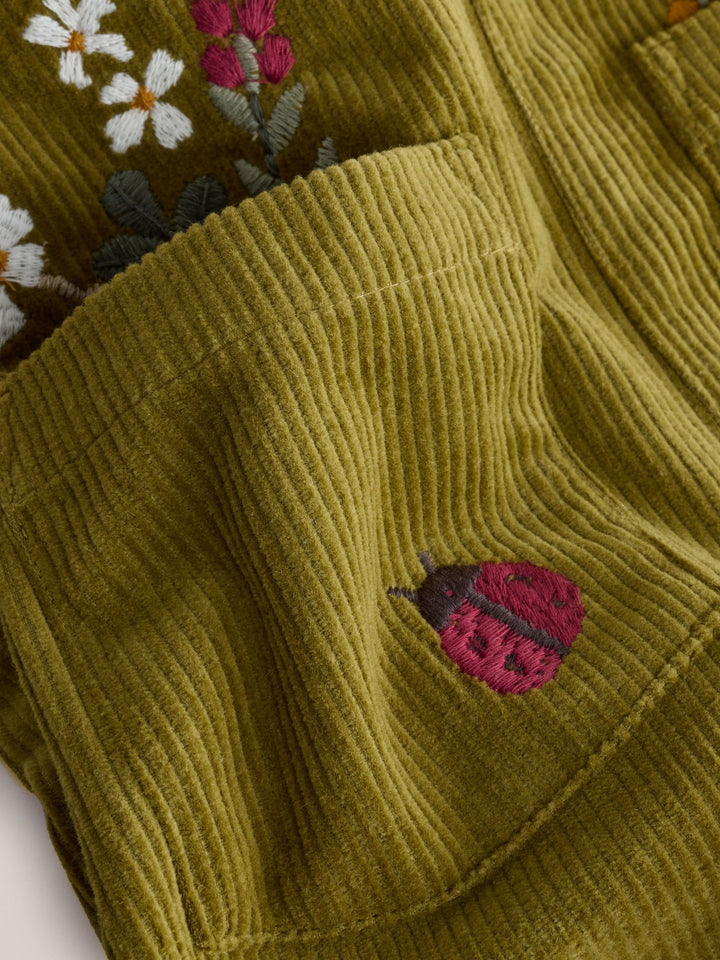 Perfect for playtime, this three-piece dungaree set is a fun and functional outfit. The corduroy dungarees feature charming green floral embroidered detailing and pockets, while the long-sleeved blouse and tights add a pop of colour. This is a complete outfit for a fun day out. 3-piece set Corduroy Floral-embroidered detailing Long-sleeved Pockets Dungaree and Blouse 100% Cotton. Tights 76% Cotton, 22% Nylon, 2% Elastane. Country of Origin: India