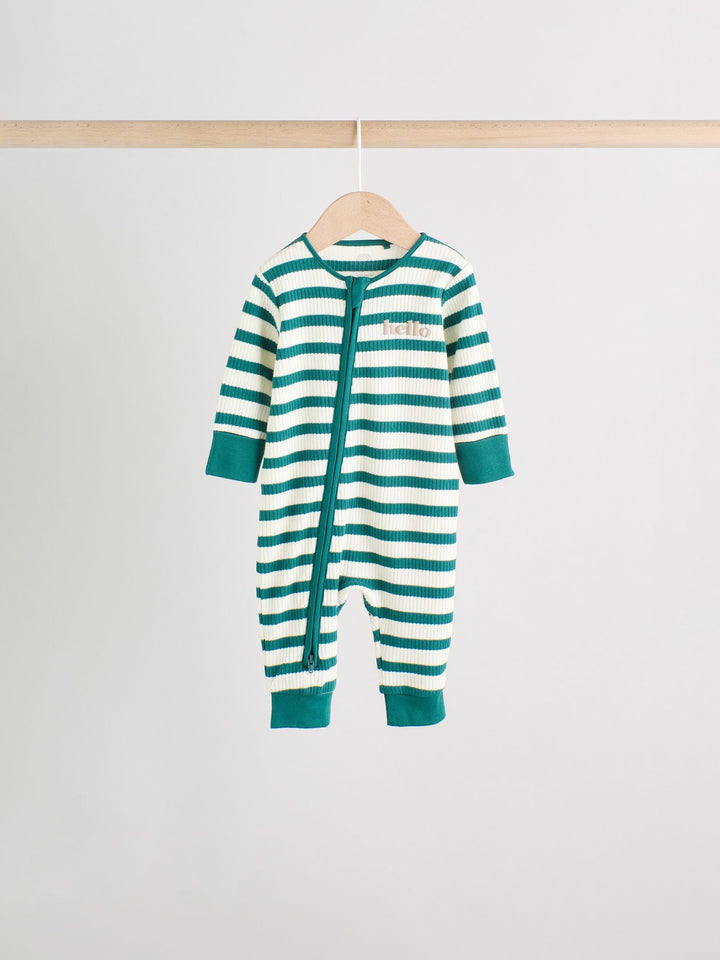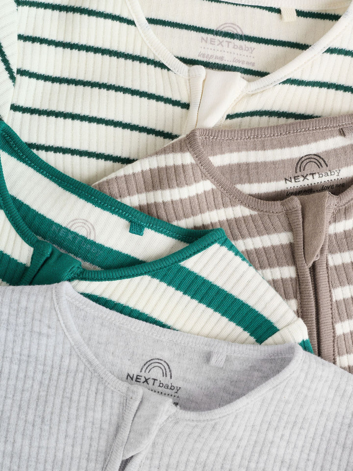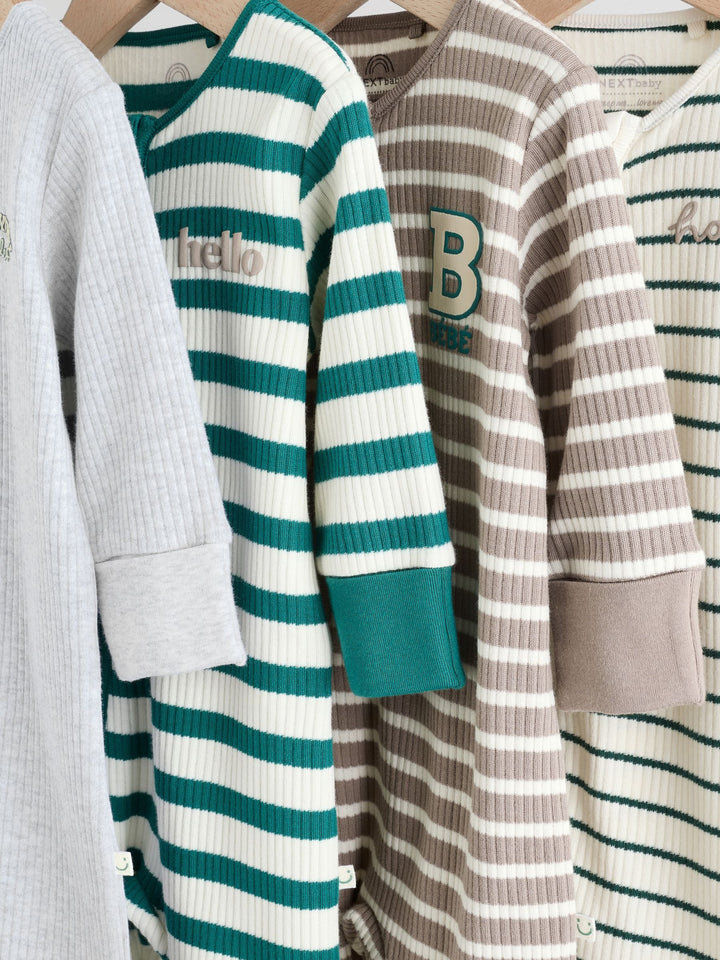 Green/Grey Baby Two Way Zip Footless Sleepsuits 4 Pack (0mths-3yrs)
