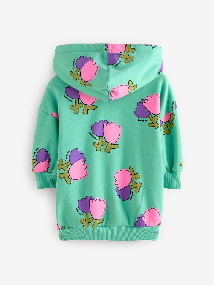 Green Hooded Sweat Dress (3mths-7yrs). Machine washable. 85% Cotton, 15% Recycled polyester. Country of Origin: Sri Lanka Better Cotton - By choosing our cotton products, you're supporting our investment in Better Cotton's mission to help cotton farming communities survive and thrive while protecting and restoring the environment. This product is sourced via a system of mass balance and therefore may not contain Better Cotton. Learn more at www.next.co.uk/better-cotton