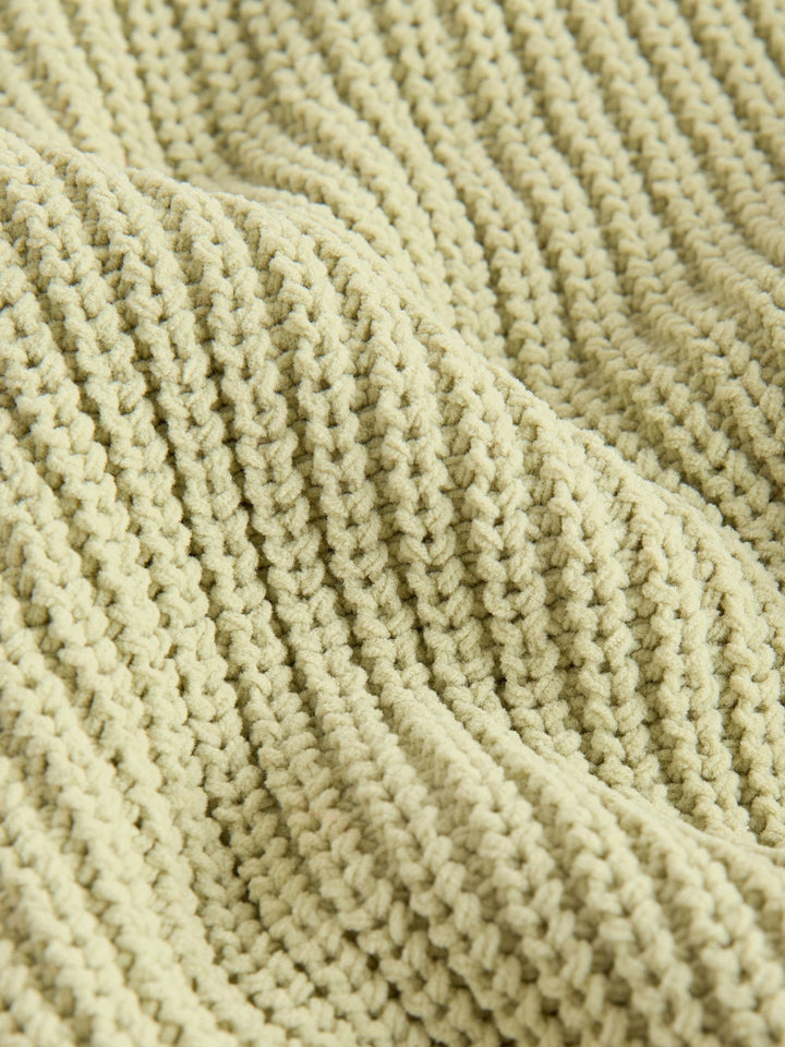 Cosy, cute and ideal for everyday wear, this knitted green jumper is made from a soft chenille yarn in a thick ribbed design, finished with a crewneck collar and long sleeves. Regular fit Chenille fabric Ribbed knit Crewneck collar Long sleeves 100% Recycled polyester. Country of Origin: Bangladesh