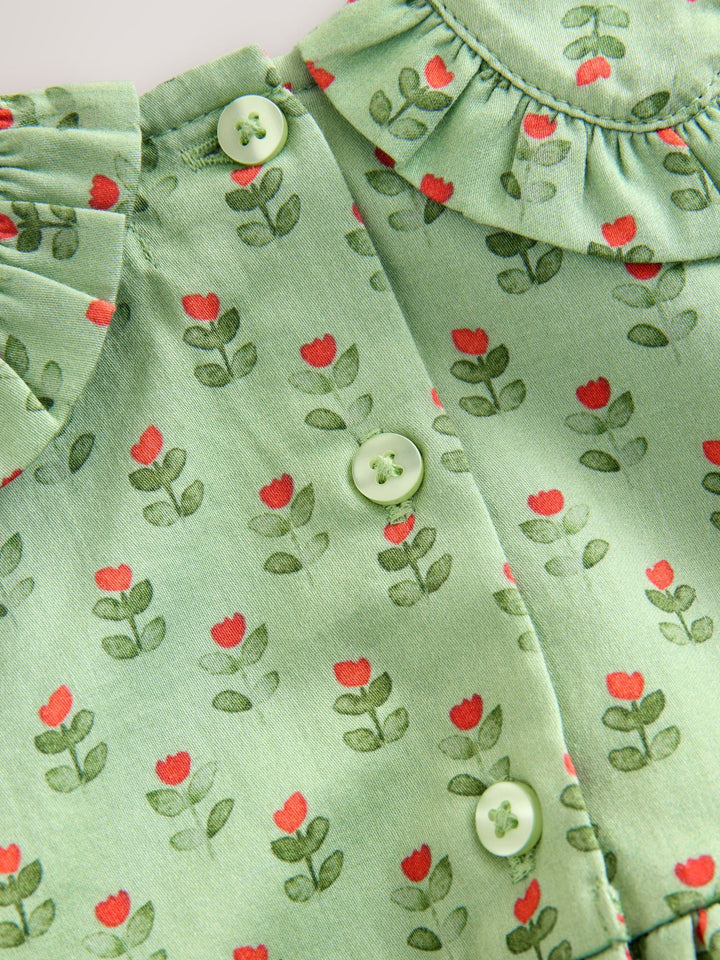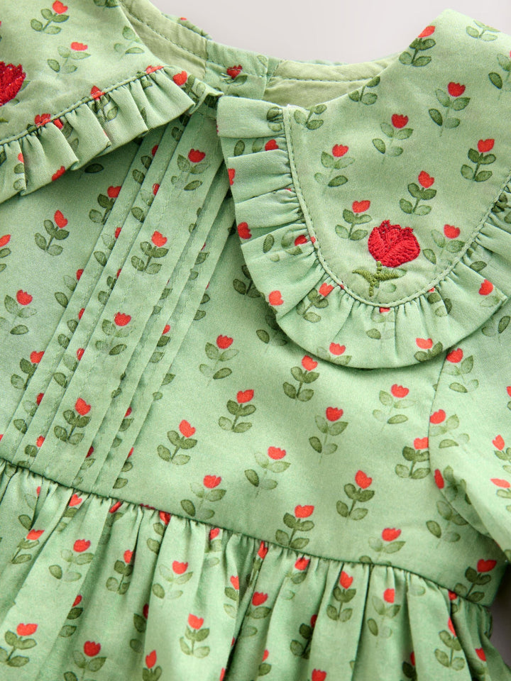 Green Printed Collar Long Sleeve Dress (3mths-8yrs)