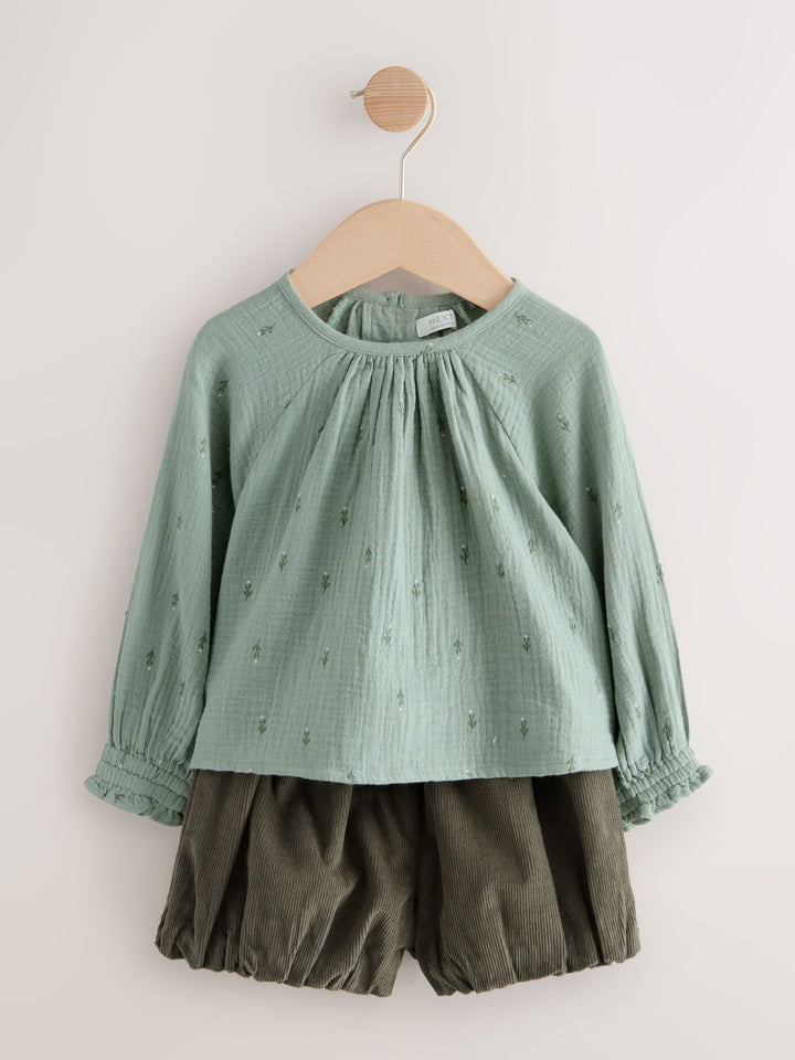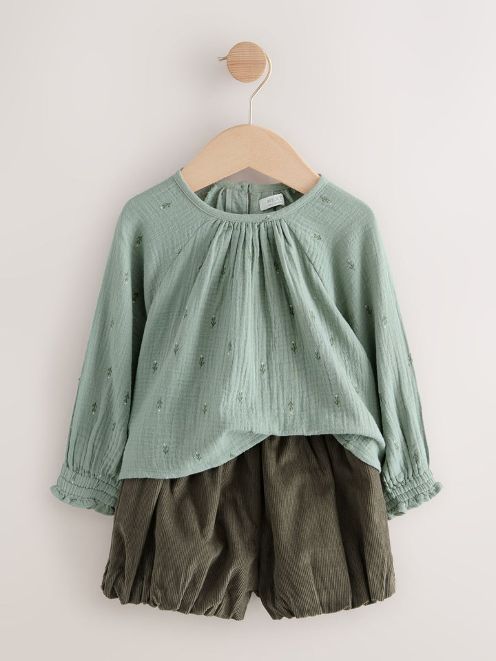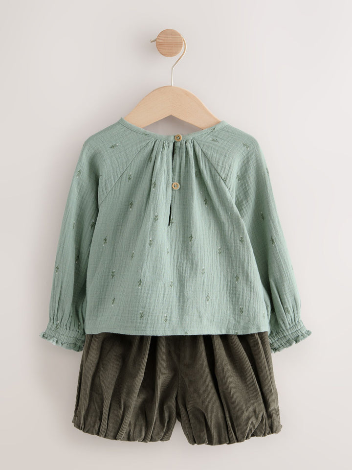 Green Puffball Shorts and Blouse Set (3mths-7yrs)