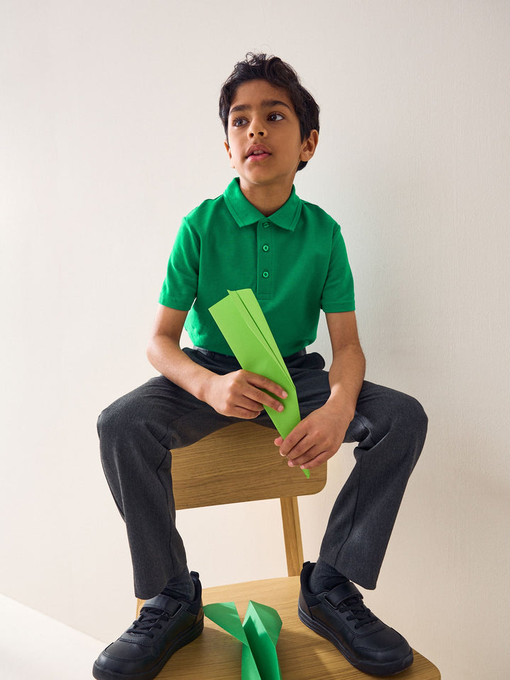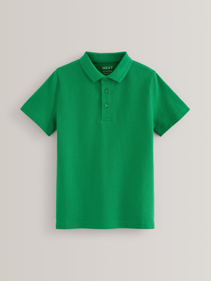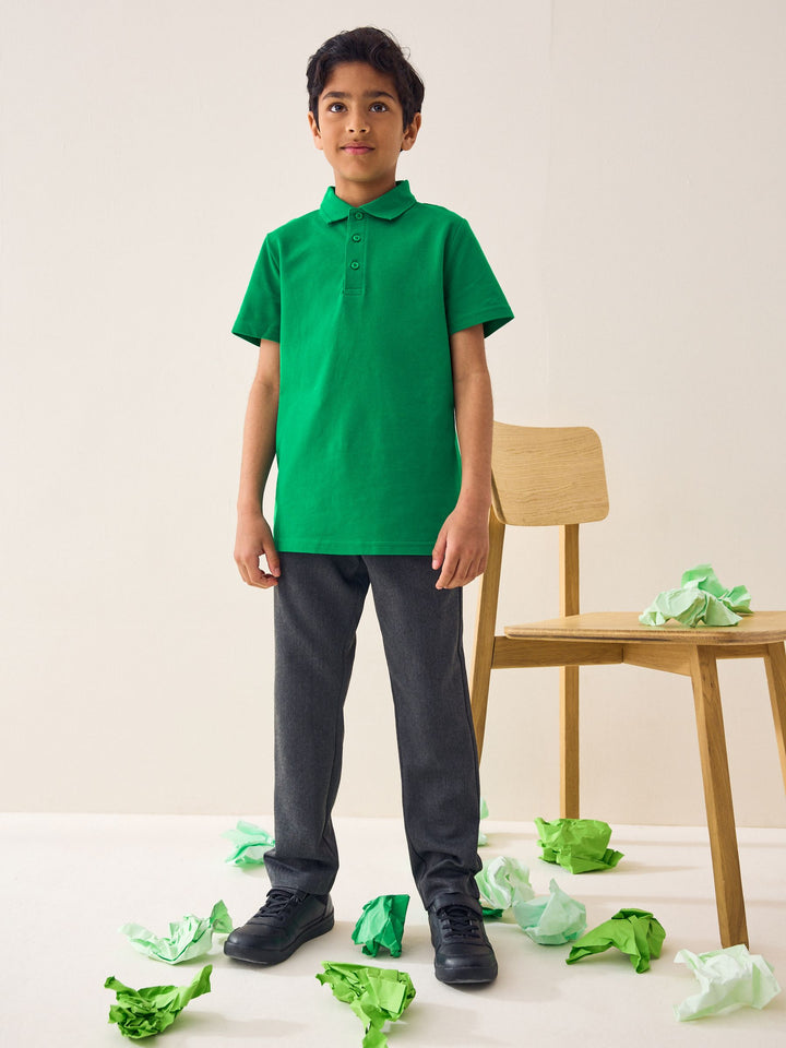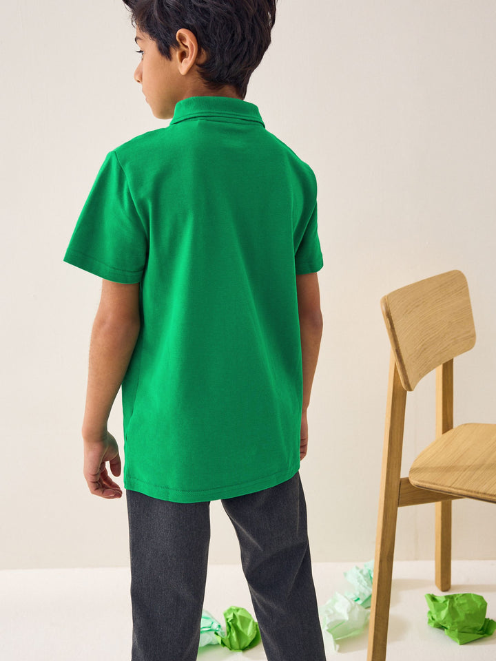 Green Regular Fit Cotton School Short Sleeve Polo Shirts 2 Pack (3-16yrs)