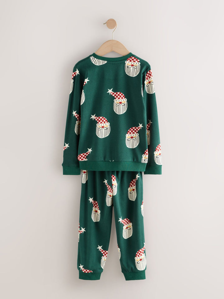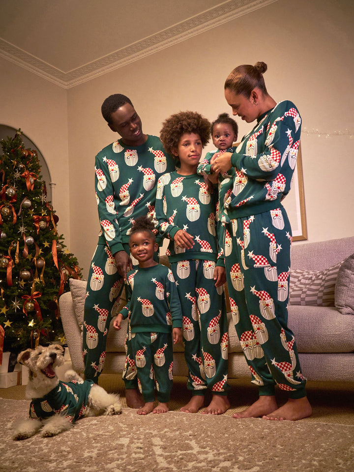 Get into the holiday spirit with your little ones in this cosy long sleeve pyjamas set, perfect for relaxing during the Christmas season. This comfortable pyjamas set features a festive all-over Green Santa print, ideal for a cosy night in and part of the matching family Christmas collection. Long Sleeve Pyjamas Set Features a Green Santa print Printed Christmas pyjamas Matching Family set Pyjama Top and Pyjama Bottom 95% Recycled polyester, 5% Elastane. Country of Origin: Cambodia Warning: Keep away from fire and flames.