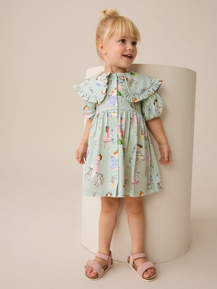 Green Short Sleeve Collared Dress (3mths-7yrs)
