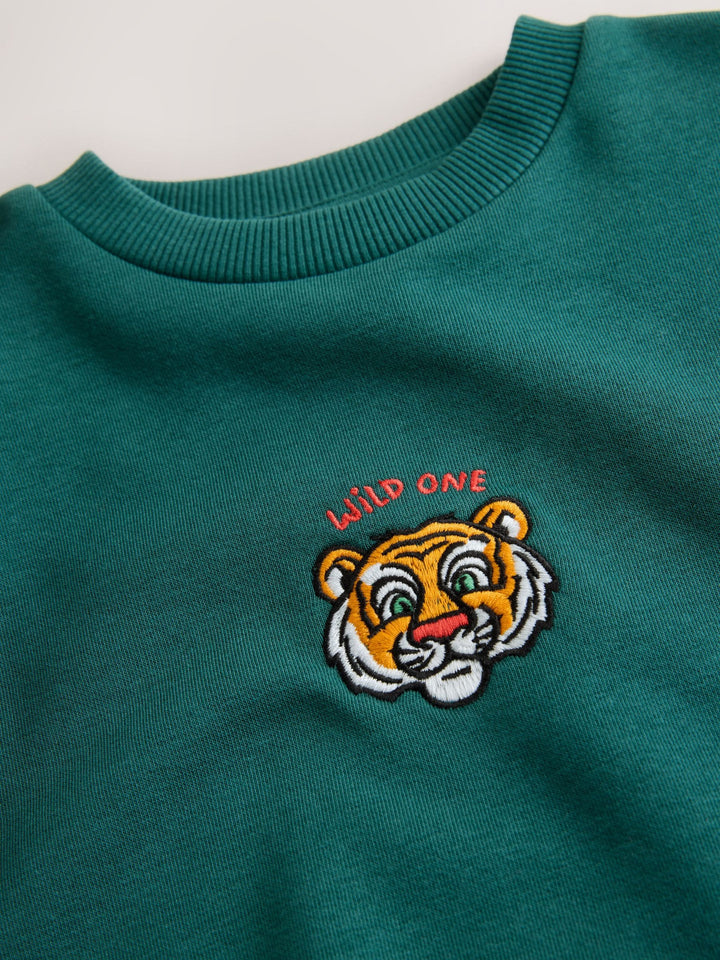 Green Tiger Print All-Over Print Crew Neck Sweatshirt (3mths-7yrs)
