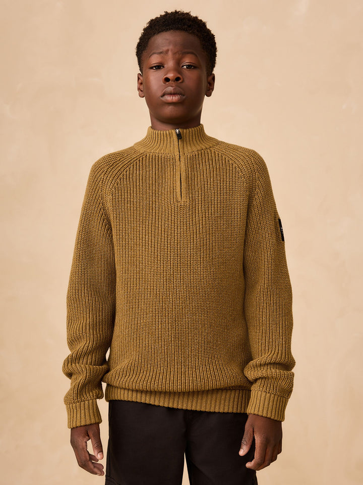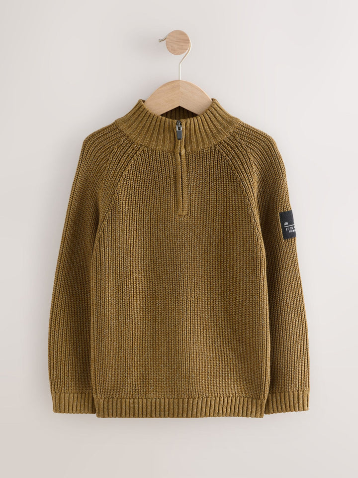 Green Utility Zip Neck Knitted Jumper (3-16yrs)